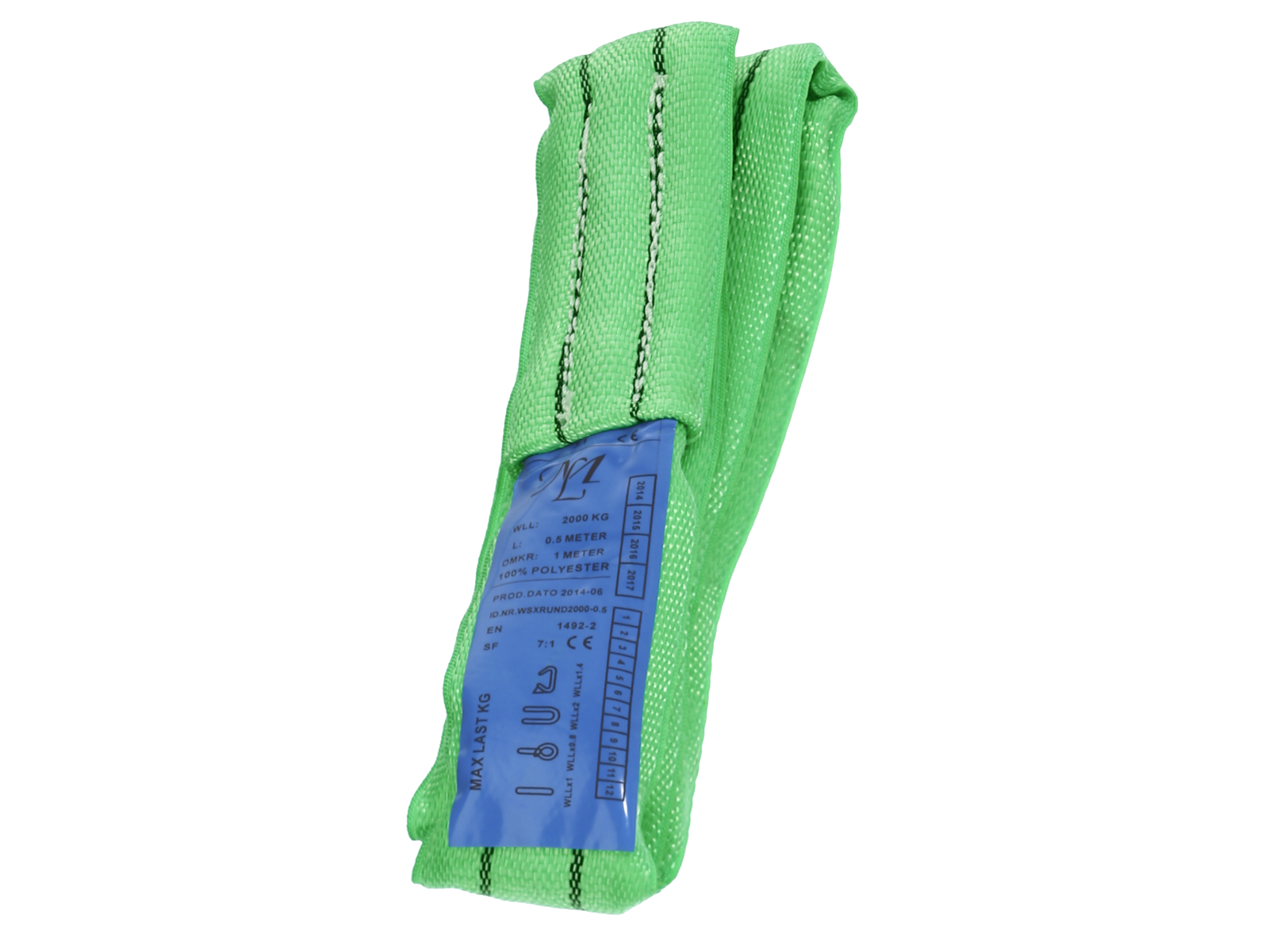 2 ton, 2,0 mtr/4,0 mtr omkreds. Grøn polyester rundsling. Sikkerhedsfaktor 7:1. Godkendt til løft