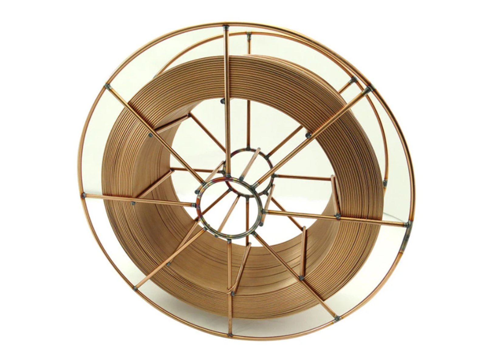 Kobberbeklædt massiv 0,8 mm svejsetråd i SG2-kvalitet. Velegnet til svejsning i sort stål. Oprullet på BS300 spole af stål med nav. OBS! Industrispolet, det vil sige IKKE præcisionsspolet.
