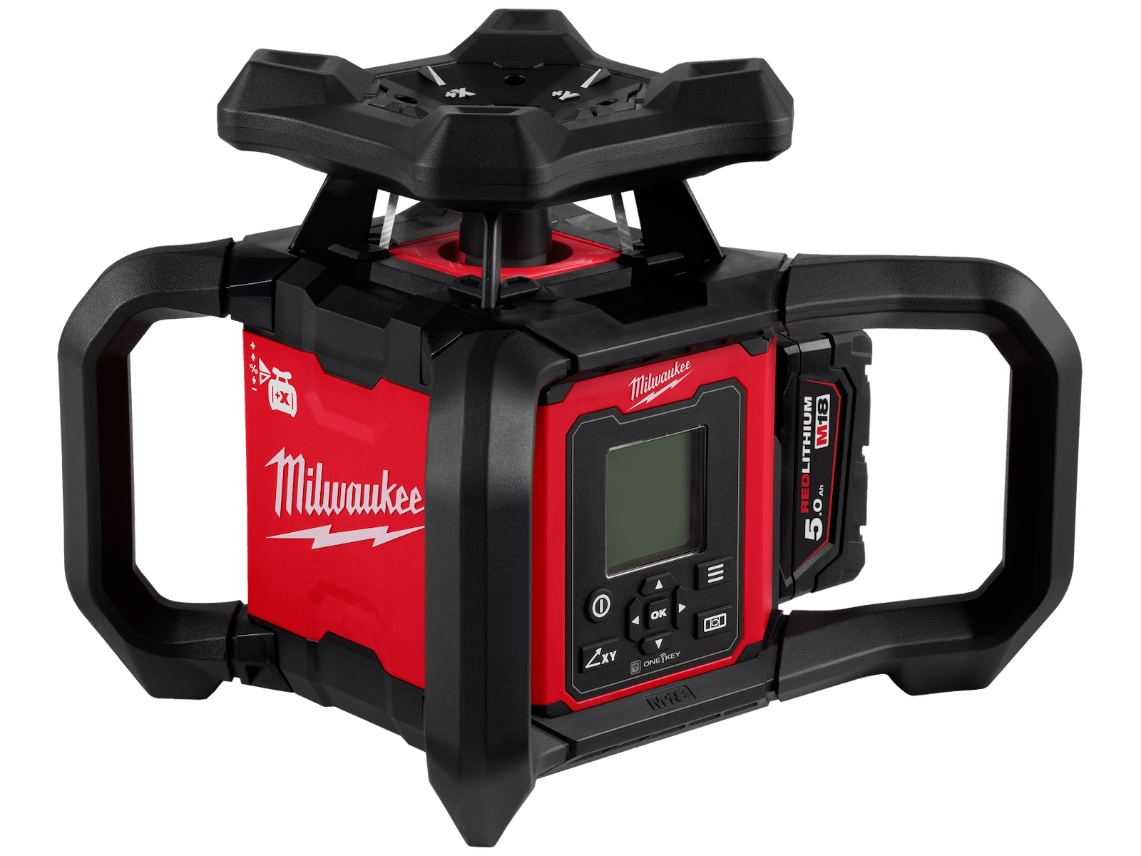 M18 1.200 mtr. horisontal/vertikal automatisk rotationslaser med One-Key optimeret til anvendelser med hældninger i to retninger og har en rækkevidde på 1.200 meter ved brug med modtager (RD1200). 72+ timers driftstid med ét M18 5,0 Ah batteri. ± 5° selvnivelleringsområde for hurtig og præcis opsætning. 1,6 mm ved 30 mtr. nøjagtighed. Automatisk justering op til 12,5 % i X- og Y-akser. Justerbar afskærmning af laserstrålen for at undgå reflektioner, der kan forstyrre omgivelserne. Stødsensor advarer brugeren, hvis laserens position er blevet forstyrret. IP66 og tåler fald fra 1,5 mtr. Leveres med 1× 5,0 Ah Redlithium-batteri og 59 min. M12-18 C lader, 1× RD1200 samt klemme til lasermodtager i en kuffert.