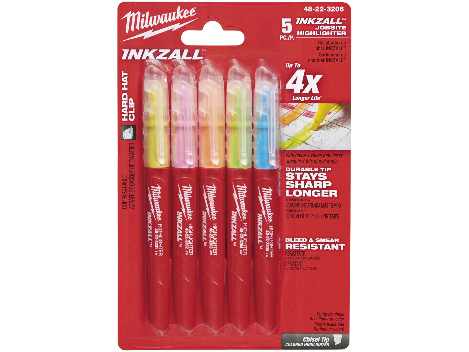 • INKZALL™ overstregningstusser. Den solide spids holder sig skarp. Flyder ikke ud og farven går ikke igennem materialet. Ikke-giftig blæk, ASTM D 4236 certificering. Ideelt til arkitekttegninger og almindeligt kontorpapir. Ikke skridbar design giver bedre greb. Clips så den kan side på hjelm, arbejdsbukser m.m. Hul til bære-/nøglesnor. Farvede.
