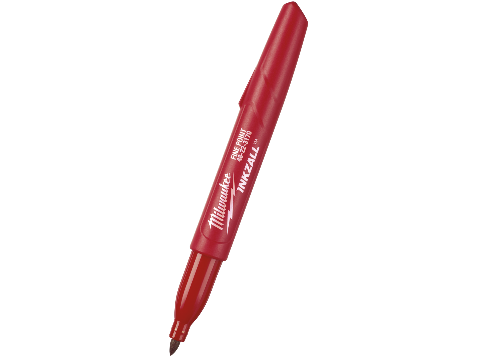 INKZALL marker. Akrylspids forbliver spids og skubbes ikke tilbage under pres. Slidstærk akrykspidsen er ideel til rug overflader såsom OSB-plader beton, træ, metal og plast. Markeren kan fortsat skrive efter 72+ timer uden hætte. Kan bruges på overflader der er våde, fedtede, støvede, rustne eller snavsede. Hurtig tørretid, der nedsætter risikoen for udtværing af markeringer på PVC og metaloverflader. Slank design giver nem adgang på steder med begrænset plads. Hård hætte med clip som kan sættes fast på kasketten/hjelmen, i bukserne eller overall. Hætten er let at åbne og kan åbnes med én hånd. Hul til at fastgøre nøglesnor, fastgør f.eks. markeren til en touchscreen enhed. Skridsikkert design for bedre greb.