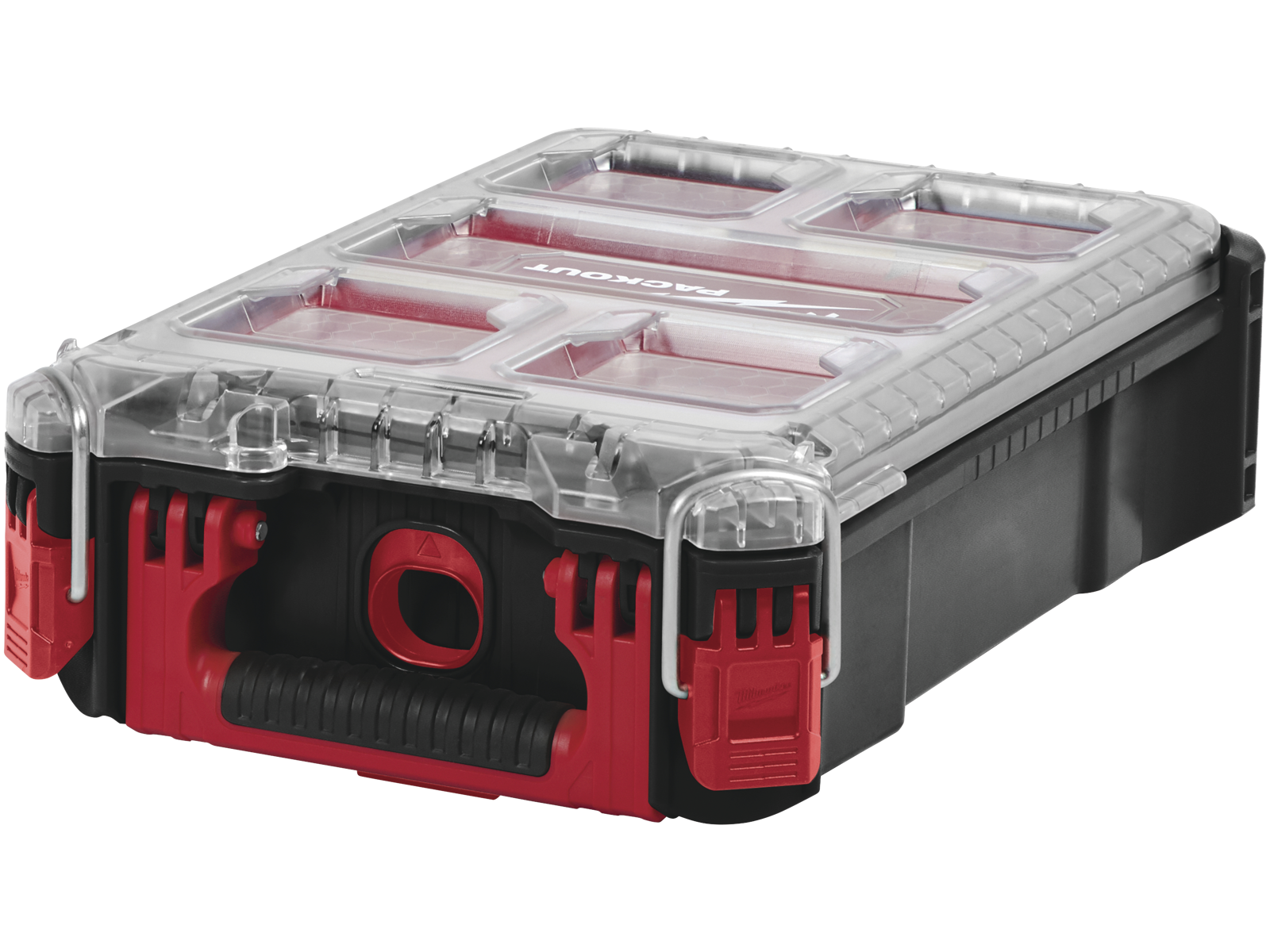 Packout tilbehørskuffert er en del af Milwaukees Packout modulsystem, som er designet til at fragte elværktøj, håndværktøj og tilbehør effektivt og med utallige muligheder for tilpasning. Tilbehørskufferten er konstrueret i ekstremt slidstærkt materiale med IP65-beskyttelse mod tung regn og snavs på byggepladsen. Kufferten fås med 5 eller 10 aftagelige beholdere til søm, skruer mv., som letter tilgængeligheden under arbejdet og forhindrer indholdet i at blive blandet sammen under transport.