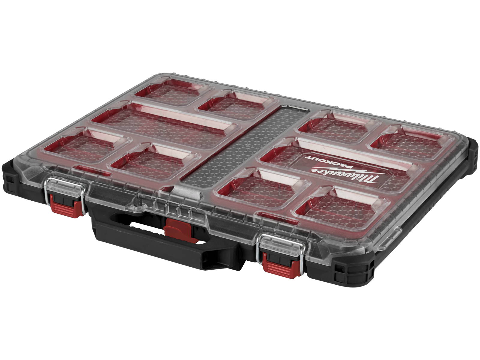 Tilbehørskuffert, som er en del af Packout opbevaringssystemet. Kufferten er konstrueret i slagfast plast for øget holdbarhed og består af store og små beholdere - alle beholdere har opdelere. Beholderne forhindrer indholdet i at blive blandet sammen under transport. IP65-beskyttelse holder regn og snavs ude.