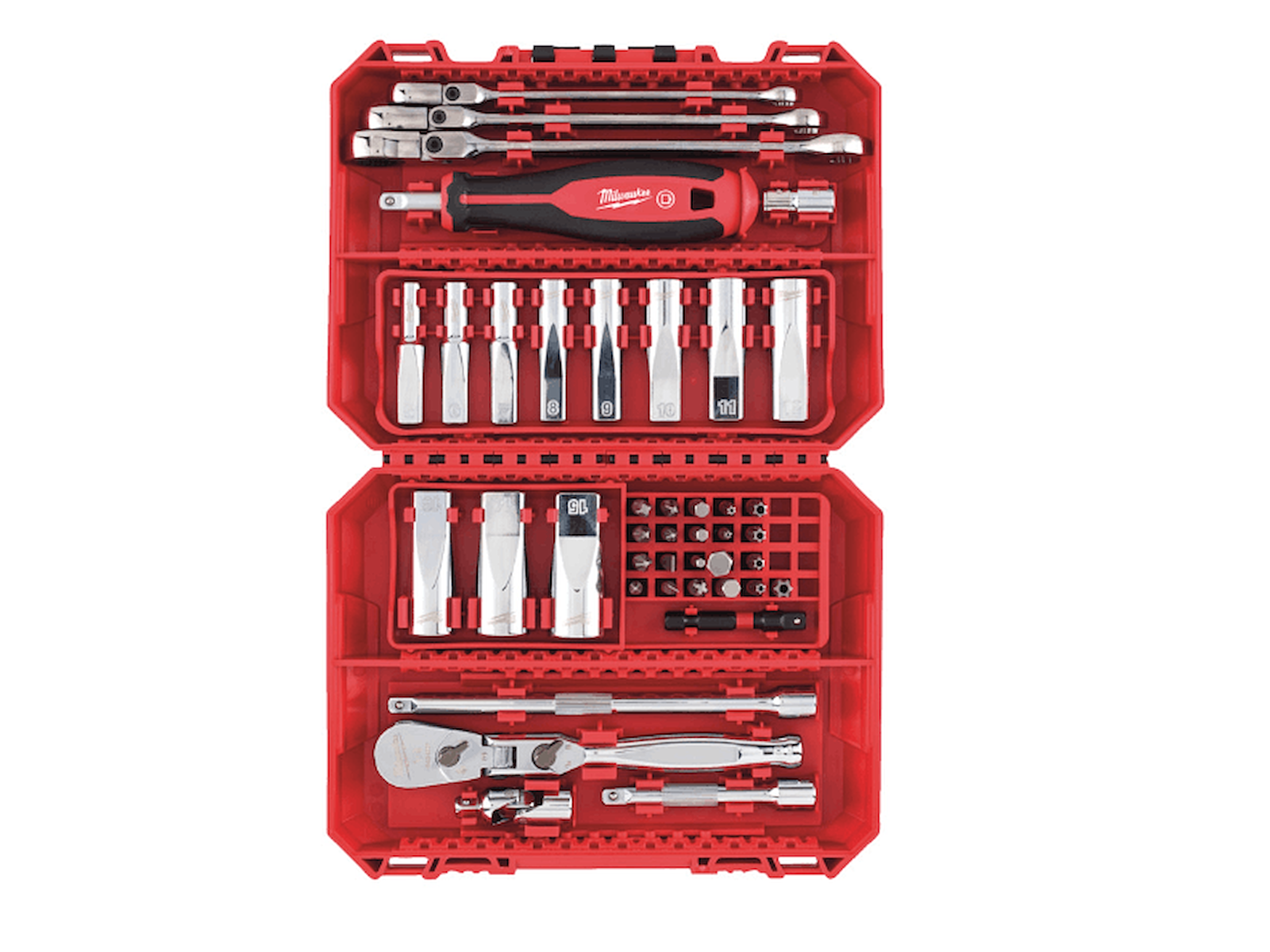 Milwaukee Bitssæt med skralde, skruetrækker og toppe (42 dele)