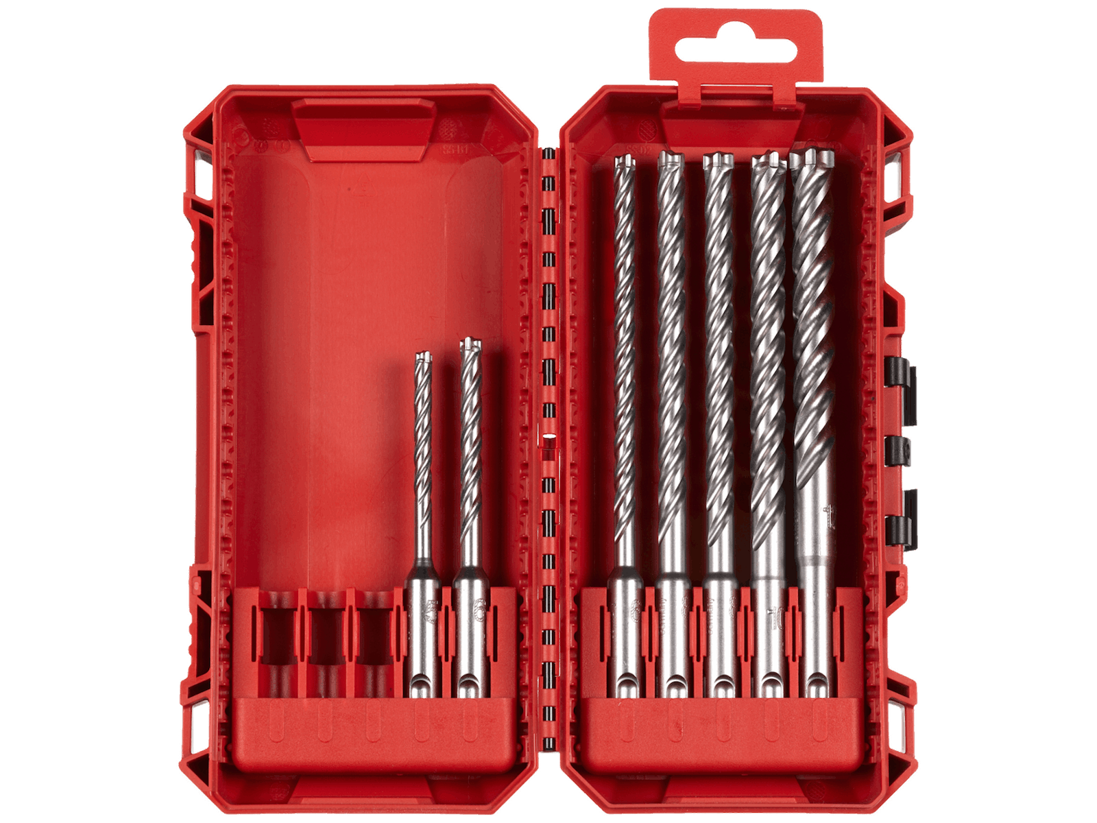 MX4 SDS+ hammerborsæt med symmetrisk 4-skærs geometri (4×90°) for perfekt runde huller - optimeret til boring af ankerhuller i armeret beton. Skarp nyudviklet spids reducerer vandring ved opstart og giver forbedret ydelse i armeringsjern. Solid svejset karbidspids på 5-10 mm og stor forsænket karbidspids i ét stykke på 12-32 mm for optimal levetid. Centreringsspids for nem punktboring med stor nøjagtighed. Spiralgeometrien sikrer optimal afledning af borestøv. PGM-rating.