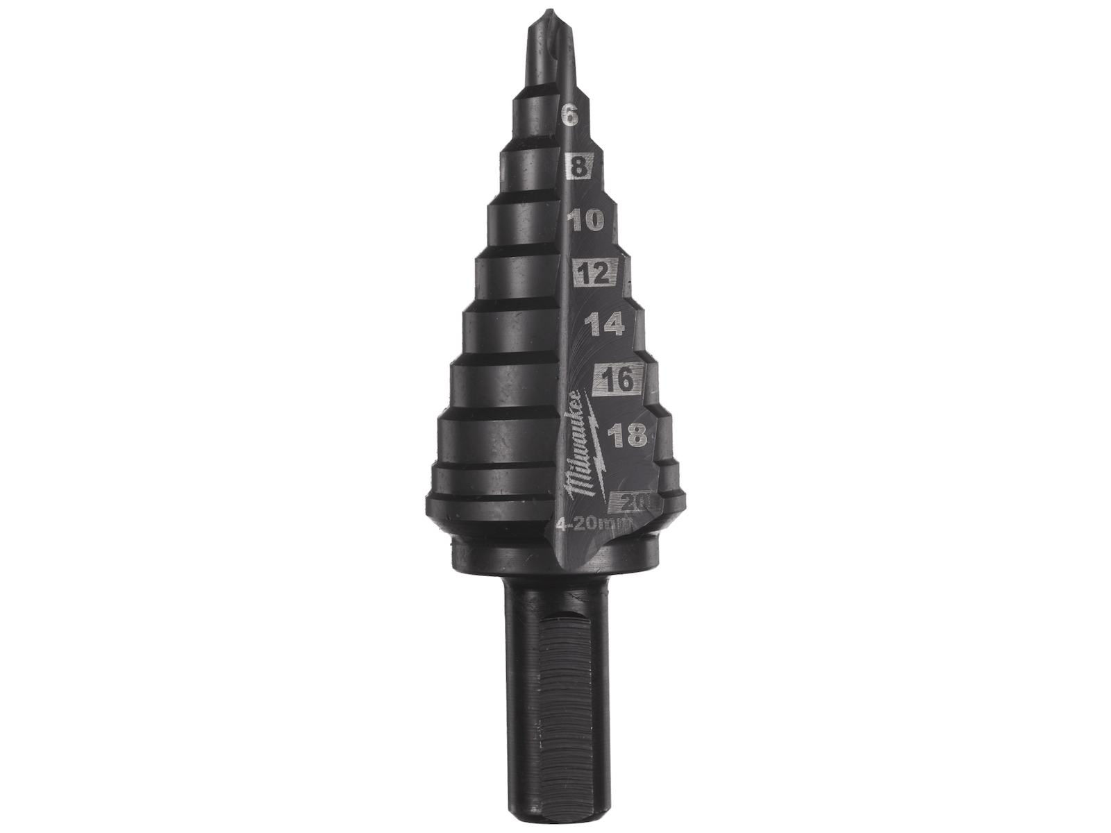 Trinbor i kobolt AlCrN til stål og rustfrit stål. Aluminium chromnitrid (AlCrN) belægning for 10 gange længere levetid vs. Milwaukee standard trinbor. Rapid Strike Tip til præcis opstart uden vandring og hurtig boring uden behov for at forbore. Special spids og trin-geometri der modvirker fastkøring. Dette minimerer risikoen for at ødelægge materialet omkring hullet. Optimeret 2-spirals design med slebede kanter for 2× hurtigere boring. 3 flade sikre greb for at forhindre trinboret i at glide i patronen og sikre maksimalt drejningsmoment. Laserindgraverede størrelser for langtids-synlighed.