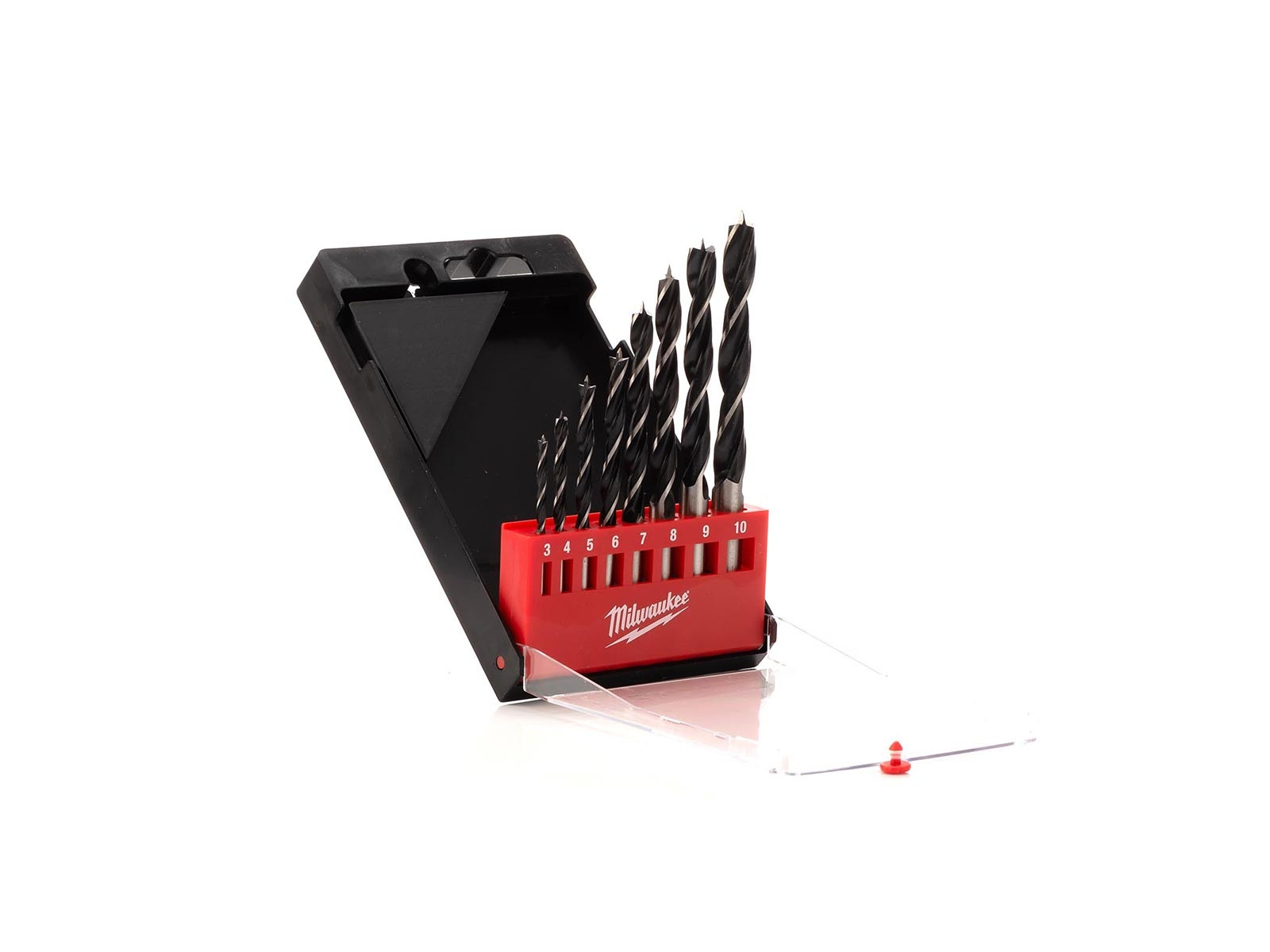 Træbor med 8 bor i størrelserne 3-10 mm. Velegnet til boring i hårdt træ, krydsfiner, spånplader og alt hårdt og blødt træ. Fremstillet i henhold til DIN 7487 E. Sættet indeholder ø3 / 4 / 5 / 6 / 7 / 8 / 9 / 10 mm. Leveres i plastkassette.