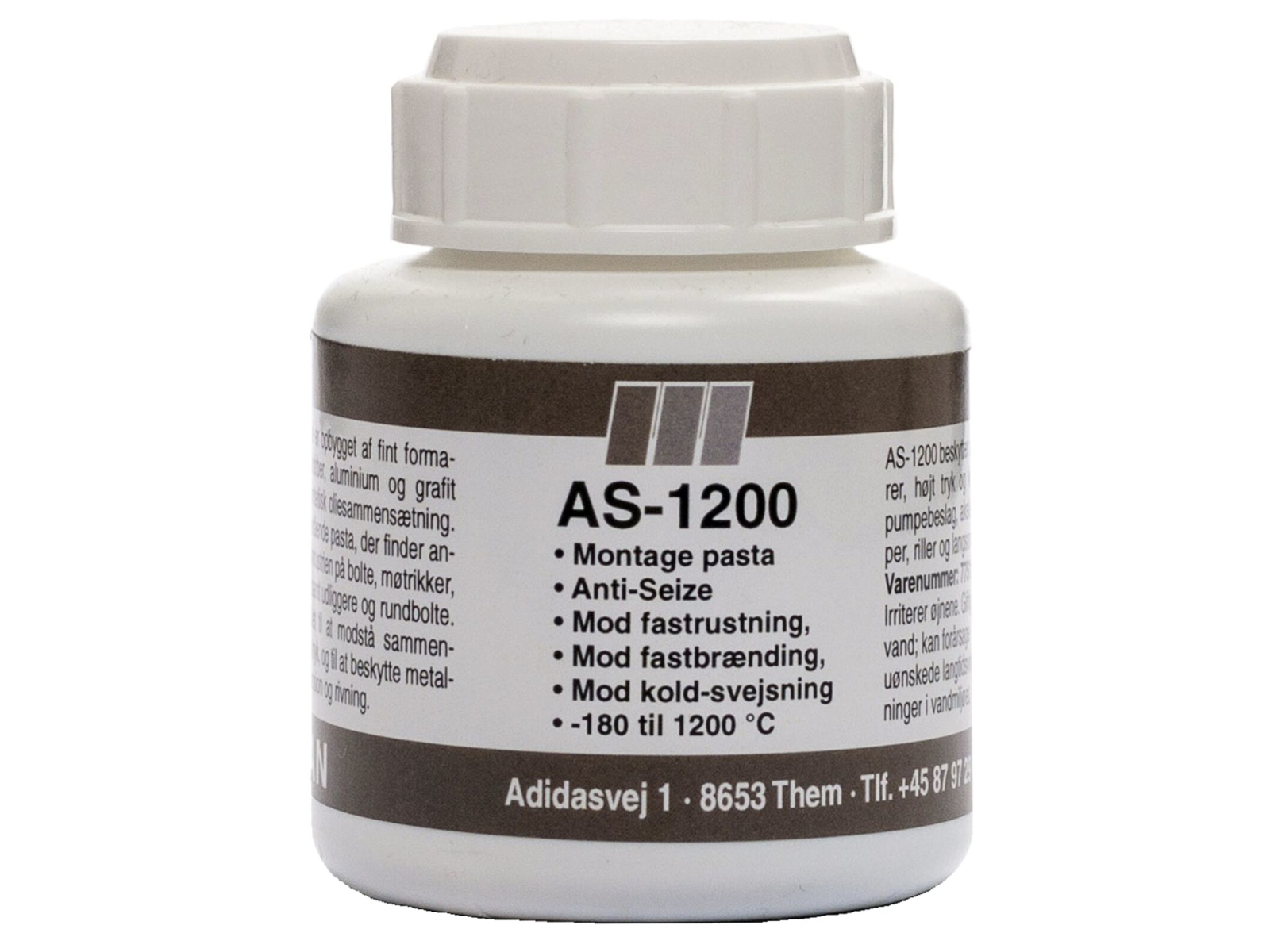 • AS-1200 Montagepasta spray er opbygget af fint formalet partikler af kobber, aluminium, grafit og MoS2 samt en speciel syntetisk oliesammensætning. Dette giver en enestående pasta der finder anvendelse overalt i industrien på bolte, møtrikker og skruer, prespasningssamlinger og pak-skiver samt udliggere og rundbolte. AS-1200 er udviklet til at modstå sammenbrænding ved høje tryk og til at beskytte metaldele imod rust, korrosion og rivning. AS-1200 beskytter specielt mod høje temperaturer, højt tryk og korroderende omgivelser på pumpebeslag, aksler, ventiltilbehør, kæder, tapper, riller og langsomtgående lejer. AS-1200 får dele til at holde længere samt nedsætter slitagen. Dette betyder reducerede udskiftningsomkostninger og lettere reparationsarbejde, selv efter påvirkning af meget høje temperaturer.