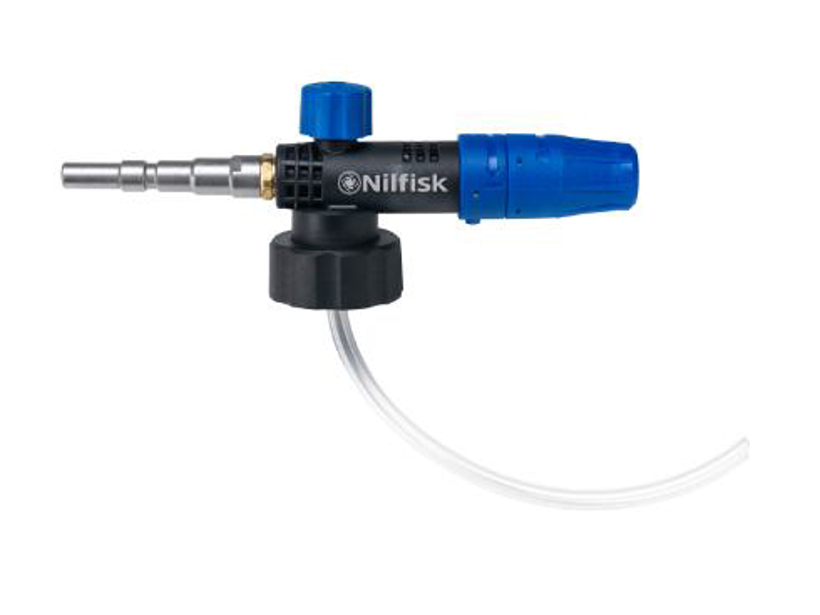 Effektiv skumsprayer, som passer til 1 og 2,5 liters beholdere (medfølger ikke.) Stor vandgennemstrømning (High Flow), der afhænger af hvordan strålen indstilles. En smal stråle rækker ca. 8-10 meter og er velegnet til f.eks. tagrensning. En bred stråle rækker 0-8 meter og kan med fordel bruges ved vask af f.eks. maskiner og lastbiler. Det er muligt at justere doseringen fra beholderen.