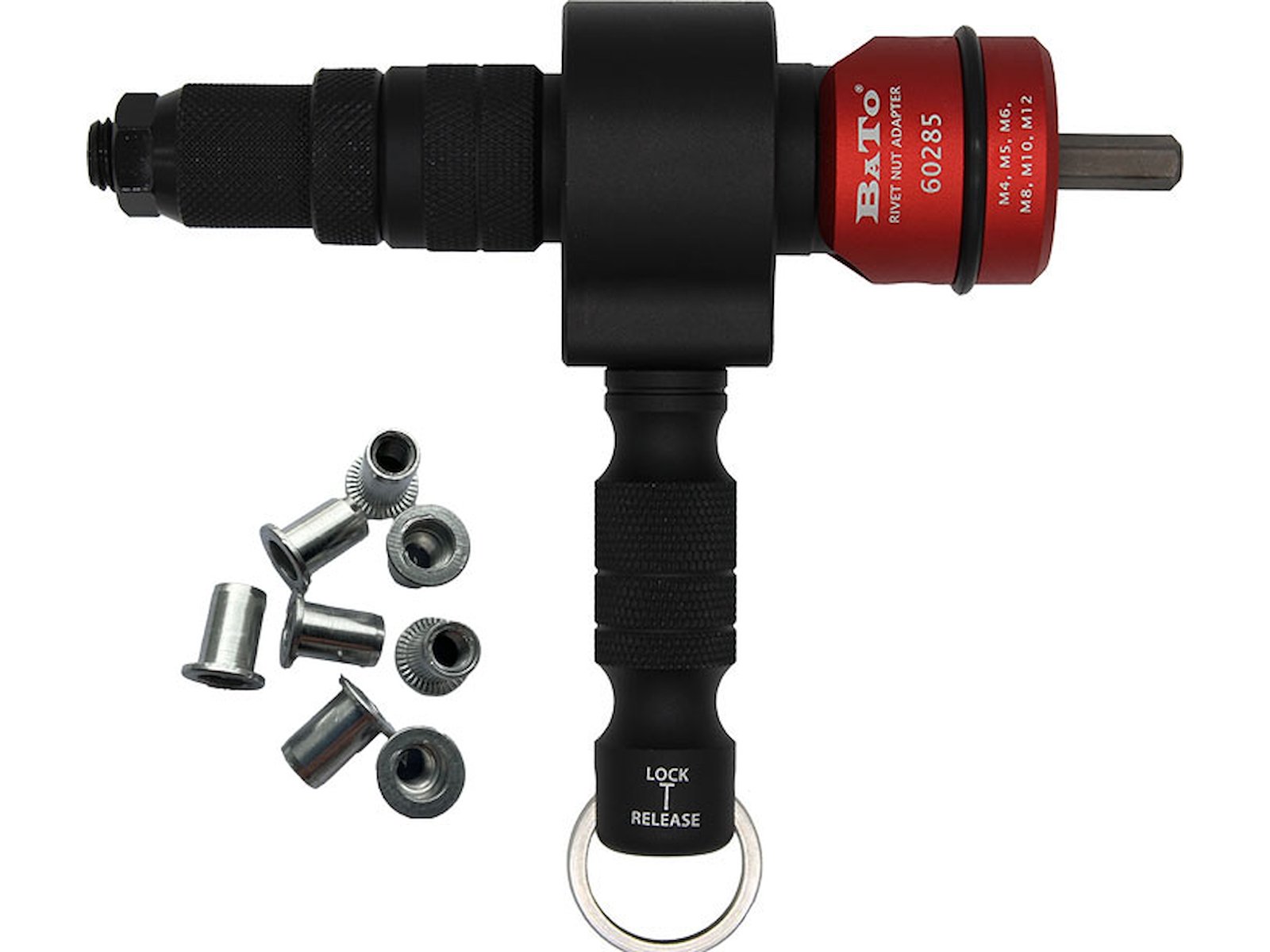 Blindmøtrikforsats med håndtag til boremaskine. Kan bruges i alle materialer. Kapacitet: M4 - M5 - M6 - M8 - M10 - M12.