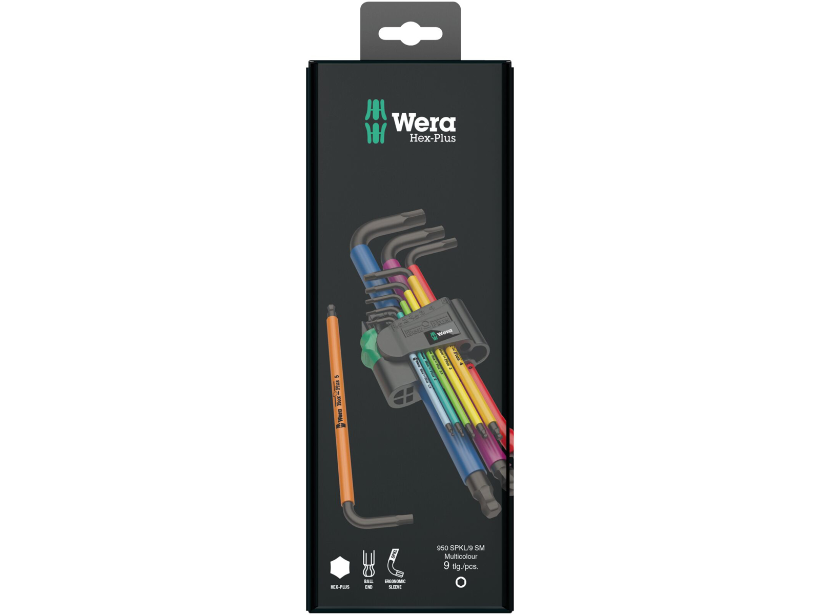 Kvalitets Wera vinkelnøglesæt med farvemarkeret komfortable plastikbeklædning. Derved får man hurtigt fat på værktøjet og det ergonomiske og bekvemme greb skåner også hænderne ved lave temperaturer. Slitagefrit clip-materiale til varigt sikkert hold på vinkelnøglerne samtidig med, at de let tages ud. Hex-Plus-profilen giver større kontaktflader i skruehovedet. Kærveffekten reduceres derved til et minimum, ødelæggelsen af skruehovedet eliminieres næsten. Kuglen på den lange arm tillader sikkert arbejde også i vanskelige montagesituationer. BlackLaser-overfladebehandlingen sørger for fremragende overfladebeskyttelse, og også mod korrosion, og for lang levetid. Laserpåført og derved slitageresistent størrelsesmarkering på vinkelnøglen, gør at man hurtigt har fat i den rigtige.