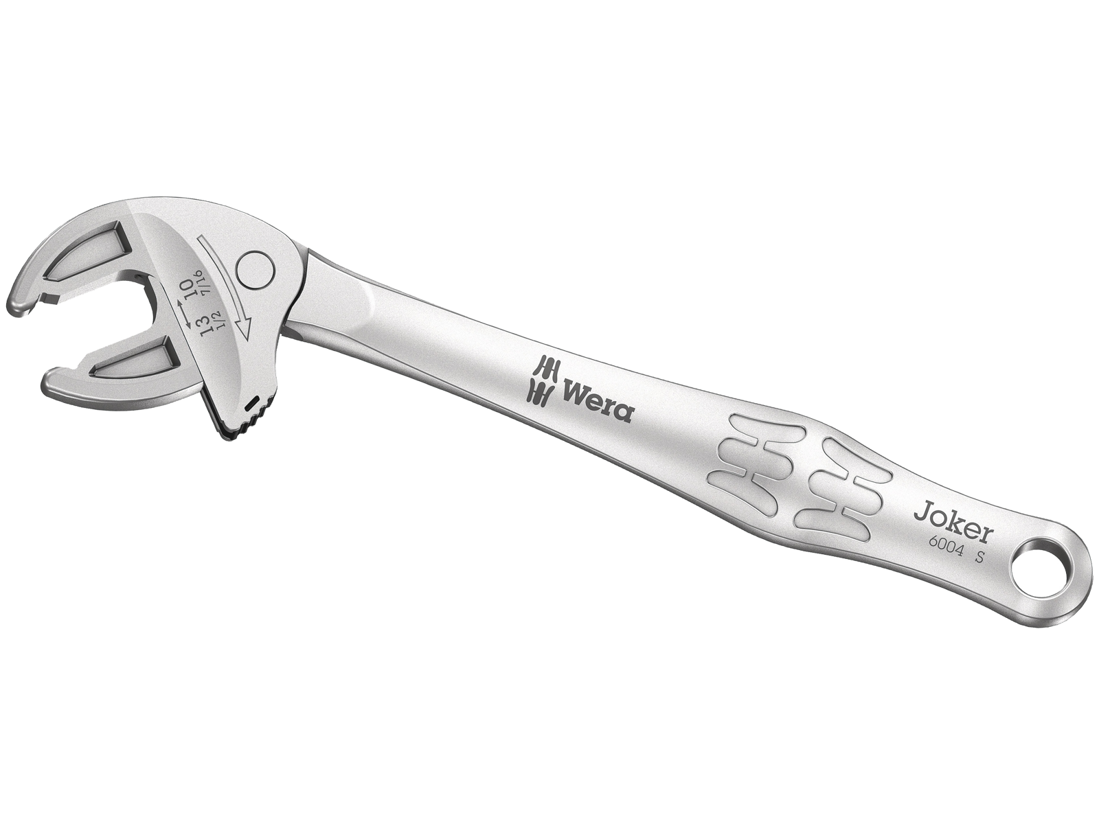 Mange brugere ønsker sig et universelt stykke skrueværktøj med et så bredt anvendelsesspektrum som muligt. Et eneste stykke værktøj til flere metriske og tommemål skulle det være. Det skulle automatisk indstille sig på de forskellige skruestørrelser. Tage godt og sikkert fat, ikke beskadige noget og give mulighed for en høj arbejdshastighed. Via de trinløst parallelførte bakker erstattes flere enkeltstørrelser af gaffelnøgler. Den størrelse, der er brug for, indstiller sig trinløst af sig selv, når nøglen sættes på den sekskantede møtrik eller skrue. Den integrerede armmekanisme klemmer den sekskantede skrue eller møtrik sikkert ind mellem bakkerne, hvilket betydelig forringer risikoen for at rutsje af eller forårsage beskadigelser. Skraldefunktionen sørger for hurtig og gennemgående skruning und at tage nyt greb. Via brug af hjørnevidde-prismer kan der realiseres en returvinkel på blot 30°. En-arm-konstruktionen i forbindelse med skraldefunktionen og hjørneviddeprismet giver mulighed for også at arbejde under snævre forhold. Den indstillelige Joker 6004 er det universelle stykke skrueværktøj. Selvjusterende. Energisk. Skraldende