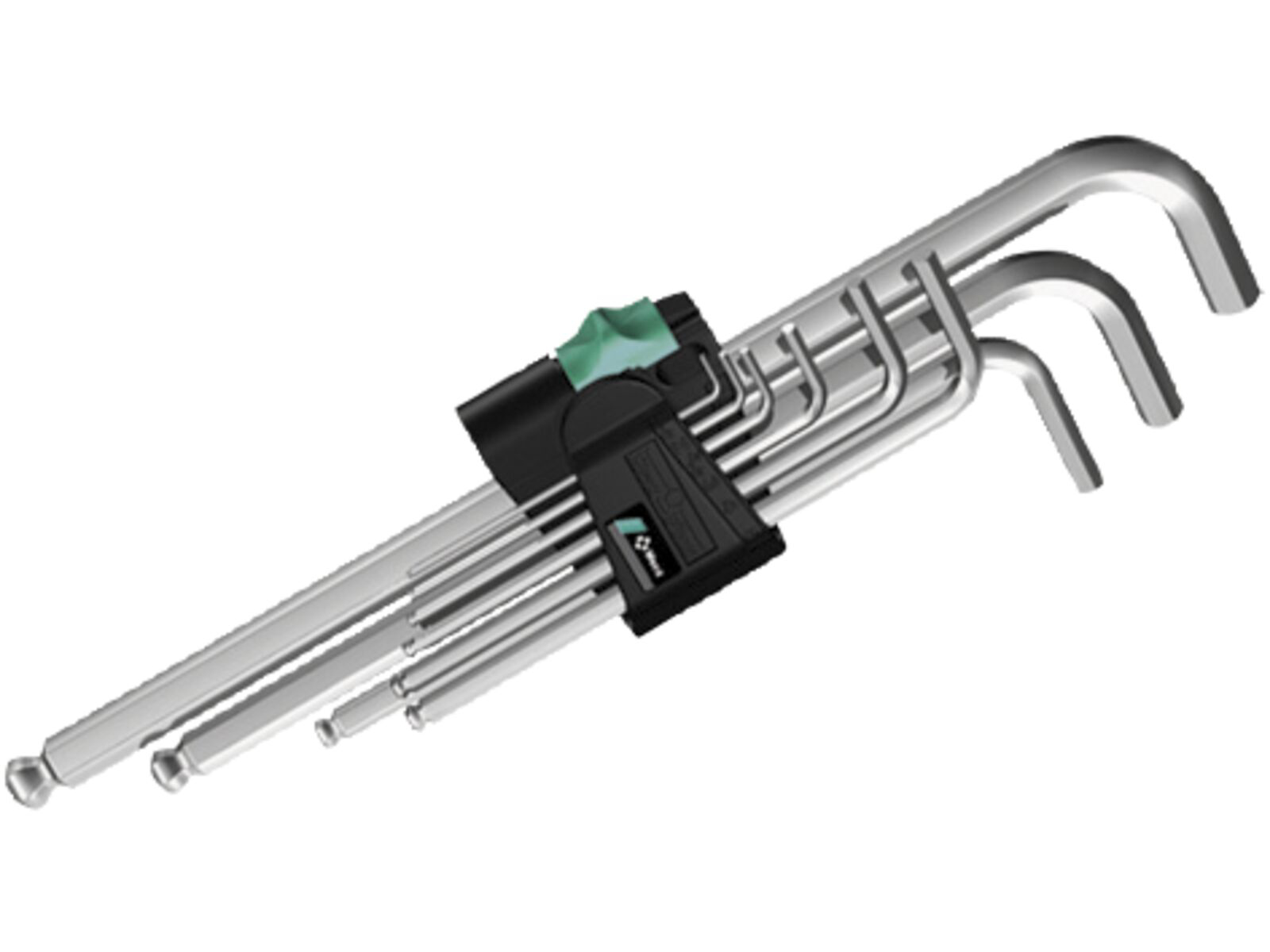 Kvalitets vinkelnøglesæt til skruer med indvendig sekskant i praktisk clip af slitagefrit materiale til varigt sikkert hold på vinkelnøglerne samtidig med let udtagning. Vinkelnøgler med Hex-Plus-profil: Giver større kontaktflader i skruehovedet. Kærveffekten reduceres derved til et minimum, der næsten eliminierer ødelæggelsen af skruehovedet. Kuglen på den lange arm tillader sikkert arbejde også i vanskelige montagesituationer. Den omhyggeligt stelforkromede udførelse garanterer høj korrosionsbeskyttelse. Laserpåført og slitageresistent størrelsesmærkning på vinkelnøglerne, som man hurtigt har den rigtige.