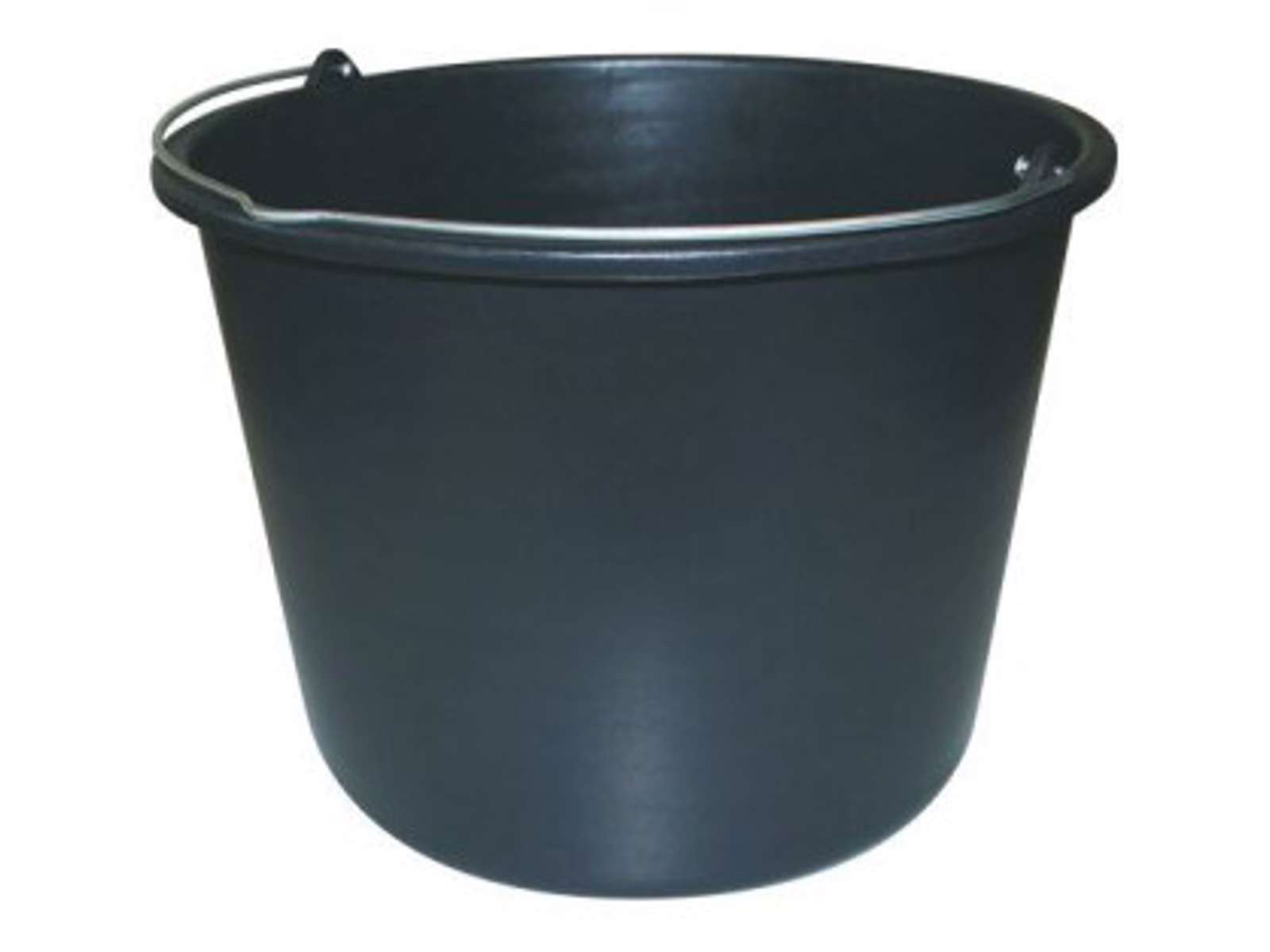 • Sort plastspand med galvaniseret hank, som ligger på kanten. Indvendig literangivelse. Velegnet til foder, vand med mere. Indhold ca. 12 liter.