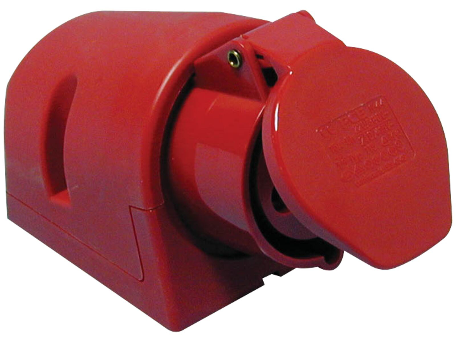 Vægstikkontakt 400V, 16V. CEE17 hunstik med klaplåg. Anvendelse: Anvendes som vægstikkontakt indendørs som udendørs til montage på væg. Teknisk-info: Spænding: 400V. Belastning: 16 Amp. Kapslingsklasse: IP44.