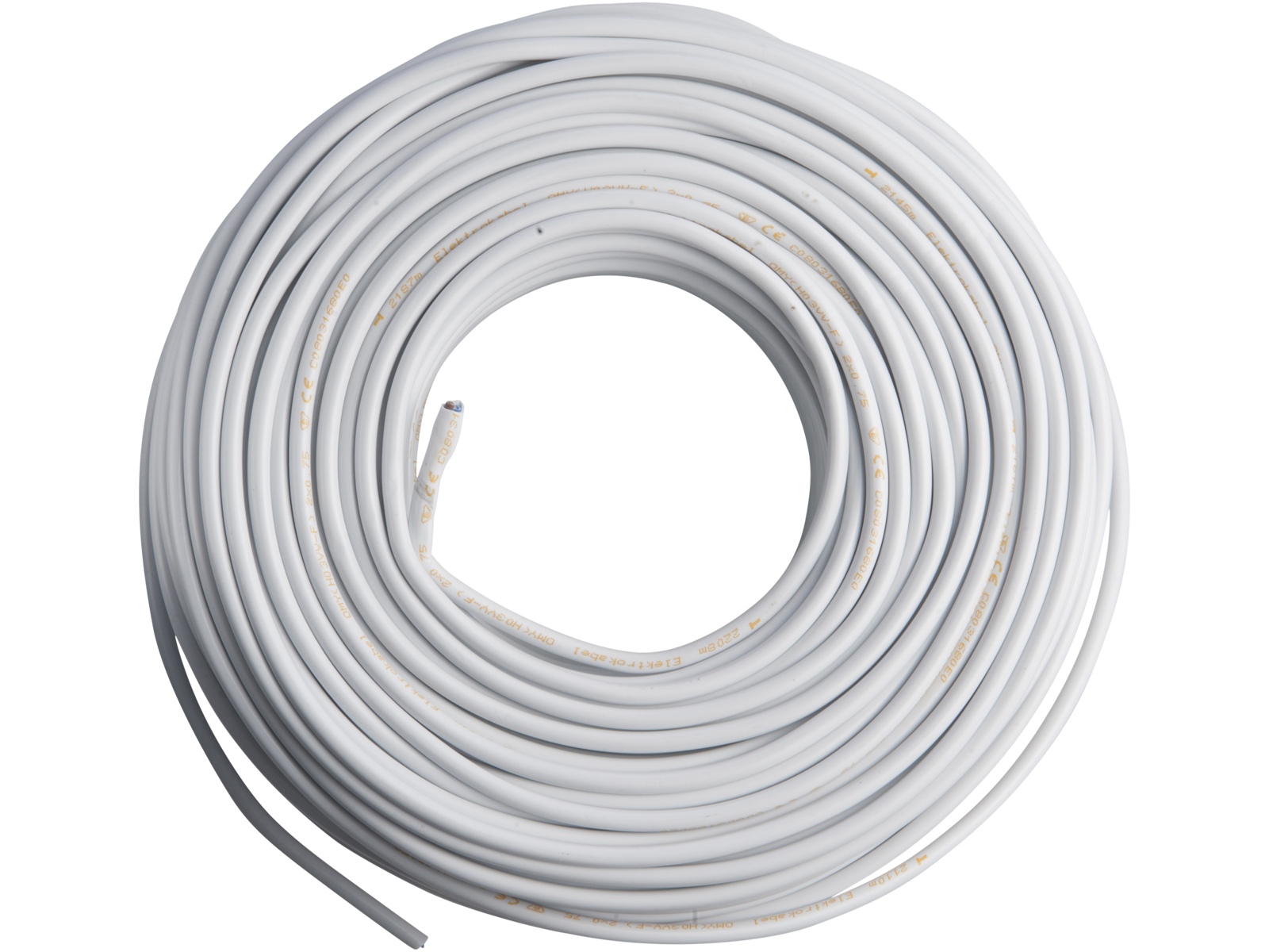 Hvid, rund platkappeledning 3G1,5 mm² H05VV-F.