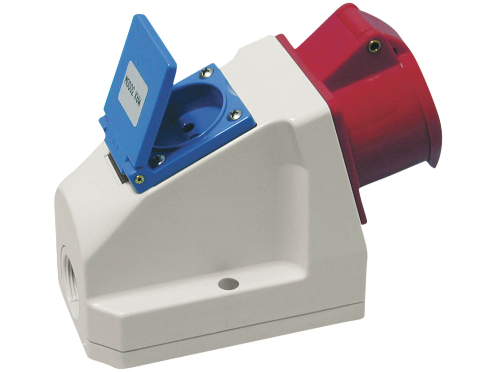 Vægstikkontakt 400V, 16A CEE17 hunstik samt DK hunstik 230 V, 10A. med klaplåg. Anvendelse: Anvendes som væg stikkontakt indendørs som udendørs samt hvor der ønskes mulighed for Dansk stikkontakt med jord. Montage på væg. Teknisk-info: Spænding: 400V. Belastning: 16 Amp. Kapslingsklasse: IP44.