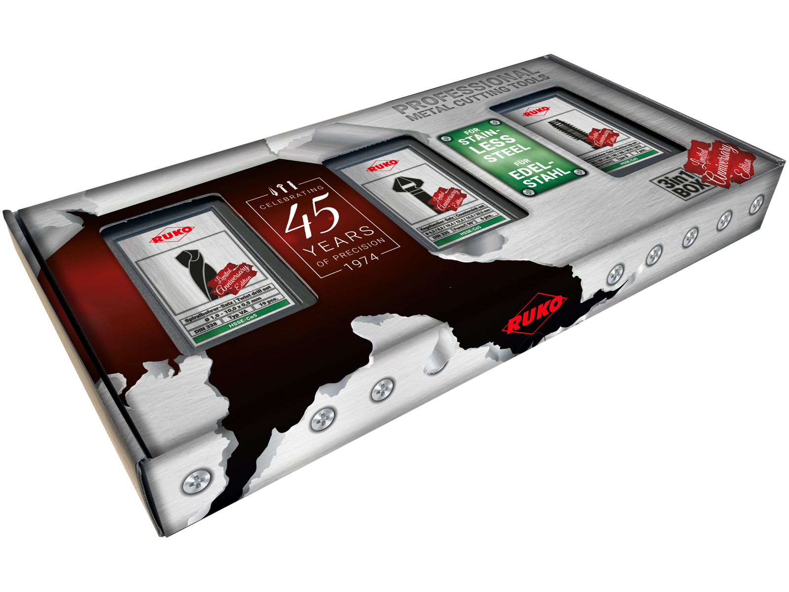 3-i-1 jubilæumssæt med bor, forsænkere og maskintappe.