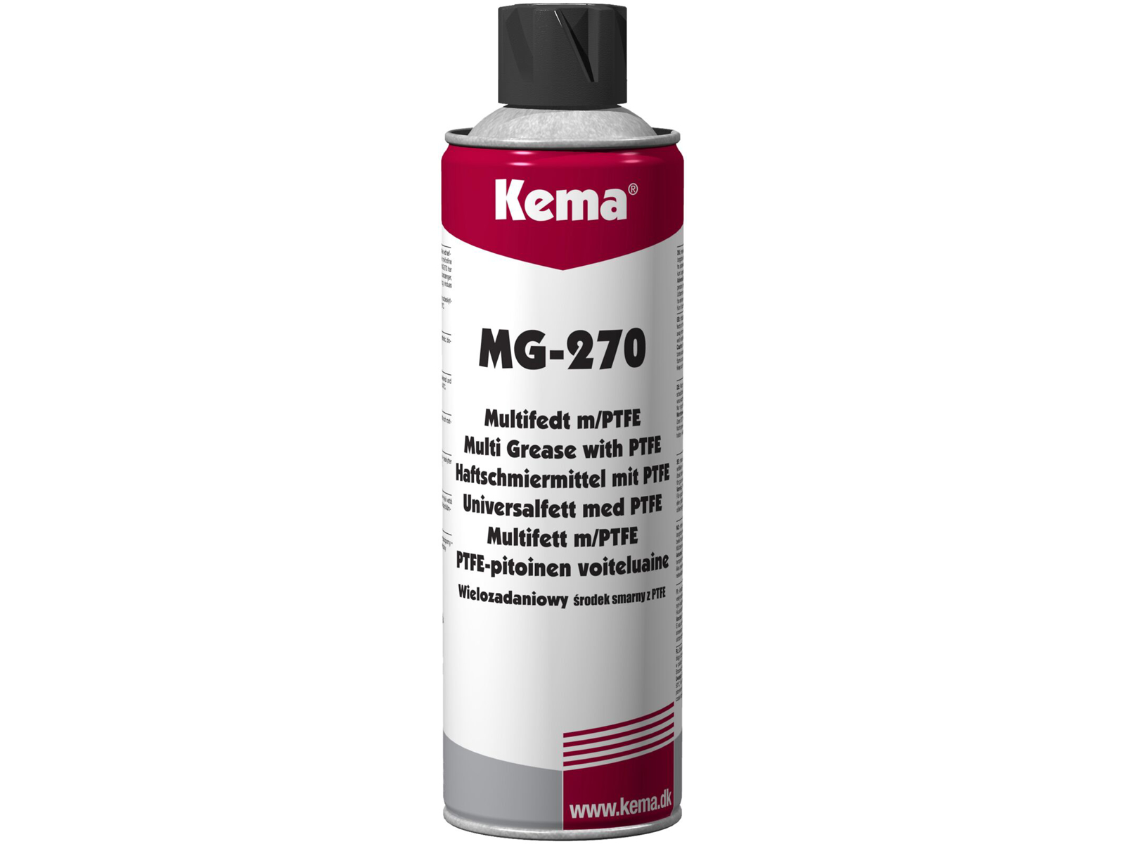 MG-270 er et lugtfrit fuldsyntetisk højtryksbestandigt smøremiddel med meget lav toksicitet. Produktet har optimale vedhæftende egenskaber og en stor krybeeffekt, da det indeholder PTFE-kugler, der trænger ind overalt. MG-270 er velegnet til smøring indenfor vedligeholdelses-, sukker-, papir- og tekstilfremstillingsindustrien. Produktet anvendes til dele som udsættes for stærke påvirkninger i form af svingninger og rystelser. F.eks. åbne tandhjul, tandstænger, kædehjul og kæder. Fortrinligt dør- og vindues smøremiddel. Kan normalt anvendes sammen med andre olier, da MG-270 er blandbar med de fleste organiske og syntetiske olier. MG-270 er neutral overfor de fleste typer af gummi, kunststof og lak. Det indeholder ikke metalsalte og modstår højtryksspuling og damp. Produktet er afvisende overfor fersk- og saltvand, yder langtidsrustbeskyttelse og har god syremodstandsdygtighed. Egenskaber: Højtryksbestandigt lyst fedt, fuld syntetisk, indeholder PTFE, vedhæftende, vandafvisende og rustbeskyttende fra -30°C til +240°C.