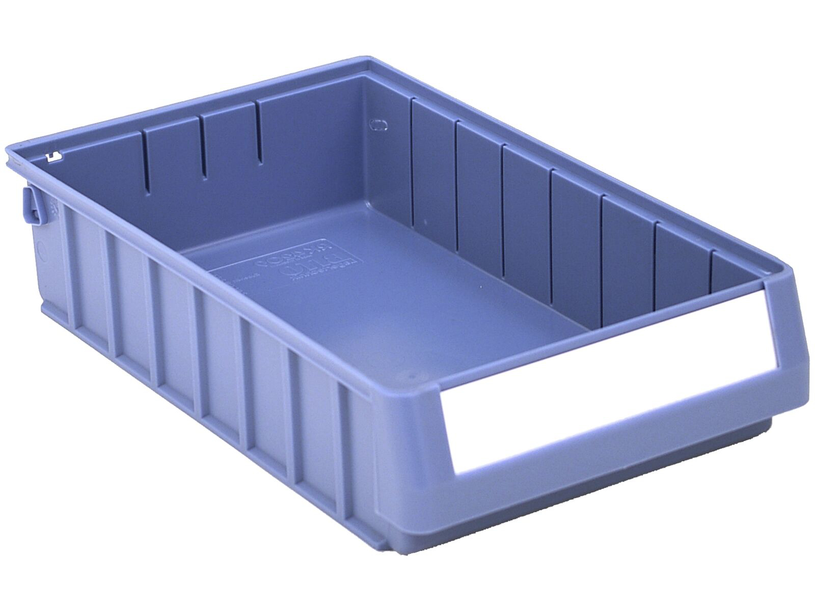 Optimalt tilpasset Bito-reolsystemerne, Effektiv drift ved enkel og sikker håndtering, Stor påfyldningsvolumen, Høj stabilitet, sikker stabling, Omfattende tilbehør, Inkl. 1 etiket per kasse, Farve dueblå.