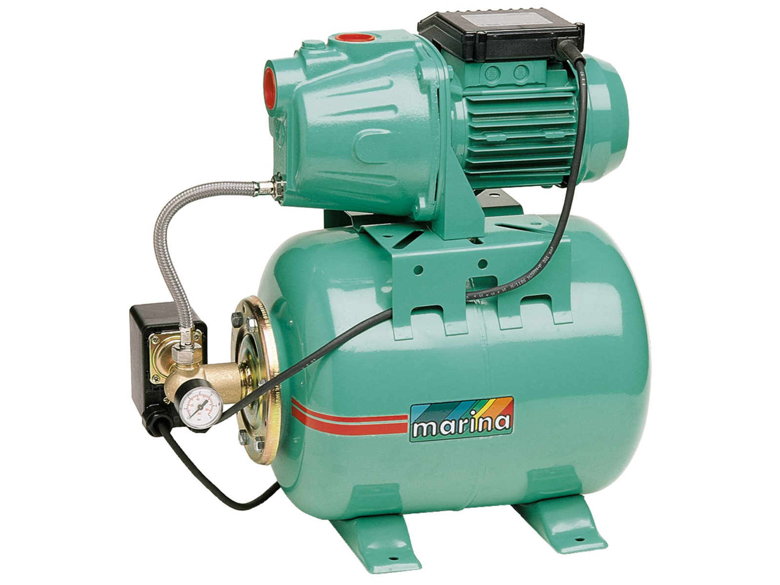 Husvandværk med selvansugende pumpe. Kan suge op til 8 mtr. dybde. Den er meget lydløs og pålidelig. Specielt anvendelig til at øge trykket på et vandsystem, pumpe vand fra f.eks. en brønd, sø eller beholder, og levere vand til husholdningen. Fuldautomatisk drift.