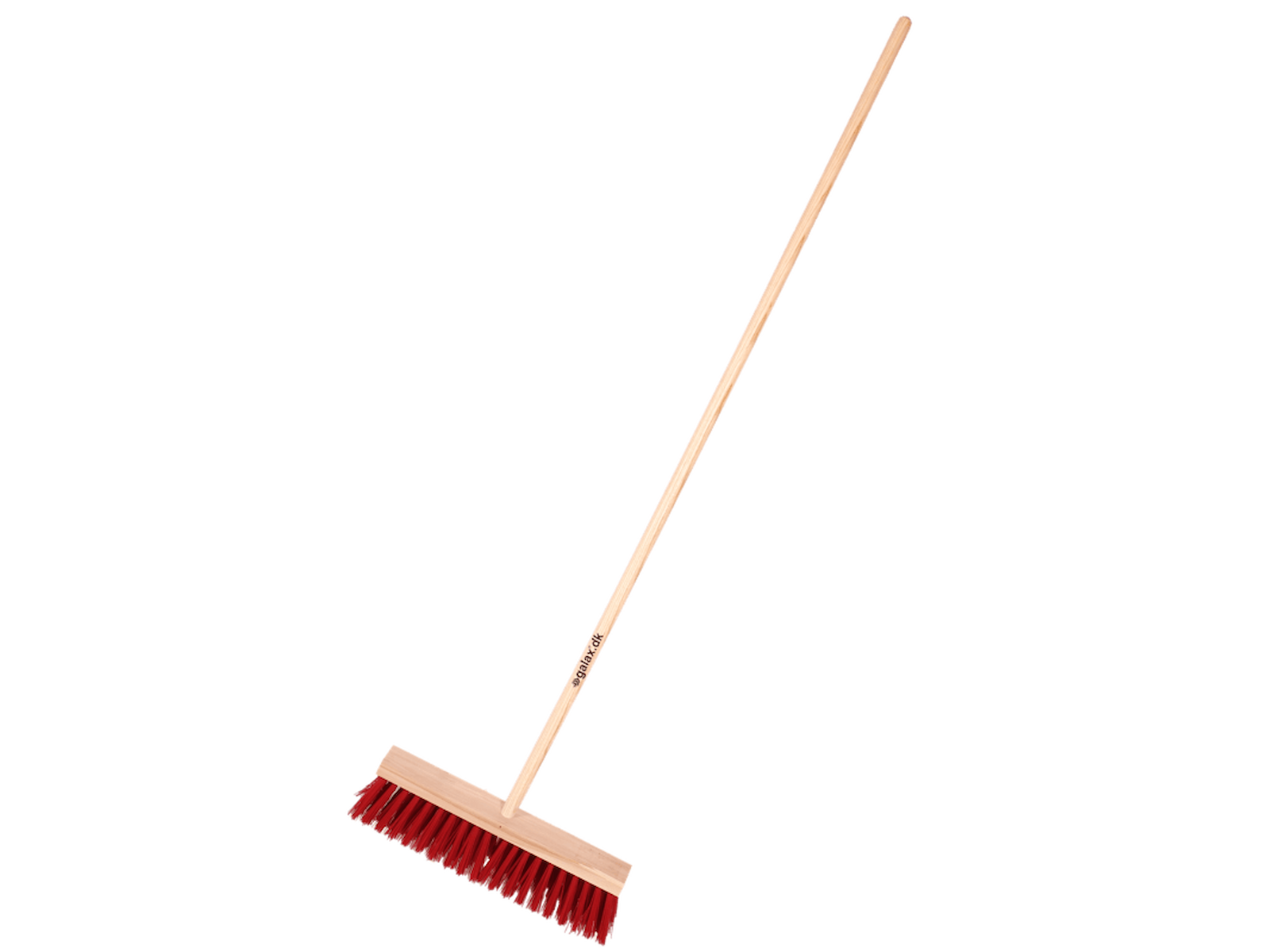 Klassisk gadekost med røde nylonbørster. Fås i forskellige størrelser samt både med og uden skaft.