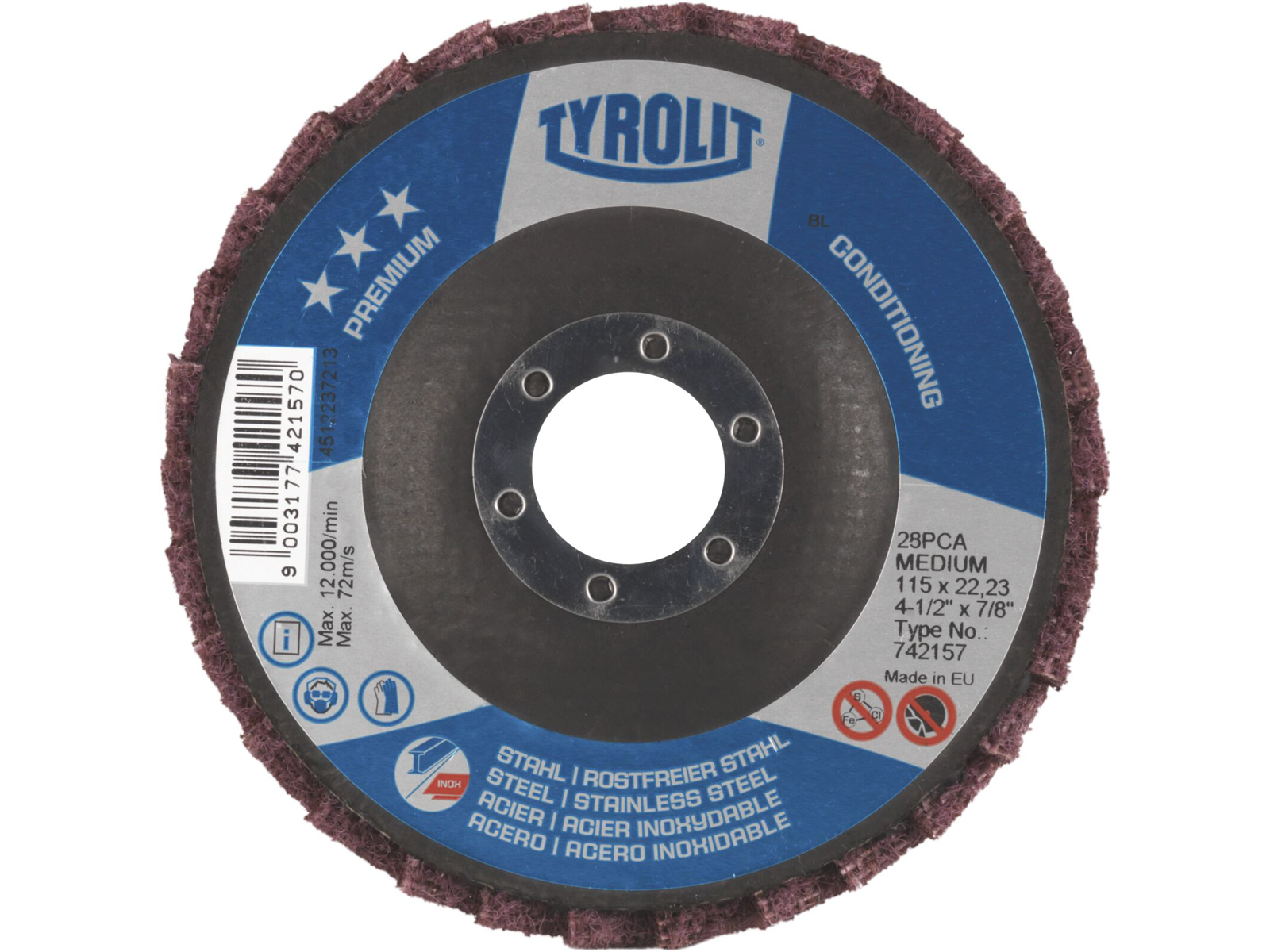 Premium conditioning til stål og rustfrit stål, kan fjerne de sidste ridser fra overfladen, før der poleres. Lamellernes tredimensionale struktur reducerer tilsmudsningen og tilstopningen af skiven til et minimum. Misfarvninger på emnet pga. for høj varmedannelse forhindres ligeledes ved brug af denne skive. Værktøjet er udviklet specielt til også at give de bedste resultater på vinkelslibere, der ikke kan reguleres. Universal anvendelse. Ud over brug på stål og rustfrit stål er det muligt at behandle overflader af PVC, ikke-jernholdige metaller og kompositmaterialer. Reducerede arbejdstider. Du slipper for overflødig efterbehandling, fordi der ikke sker misfarvninger af overfladen. De bedste resultater. Alt efter den ønskede overflade fås skiverne i en grov til fin specifikation.