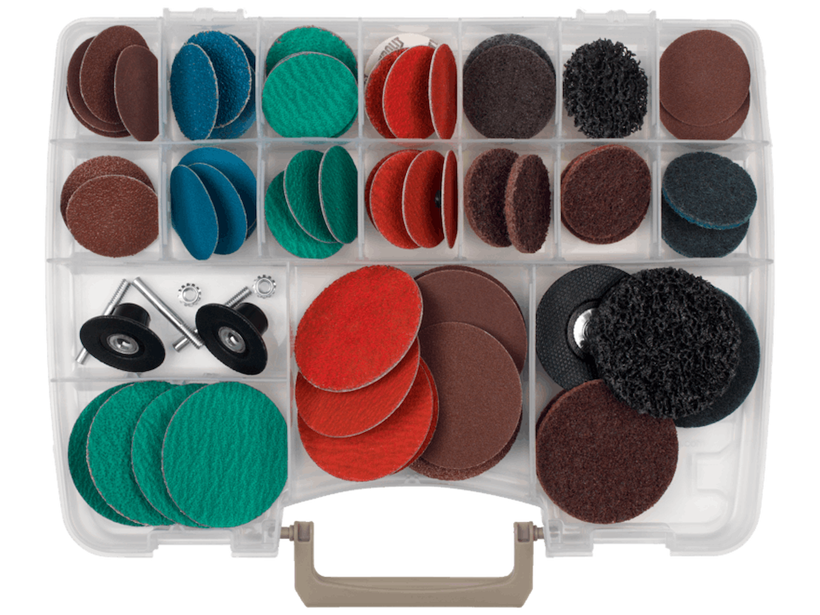 Quick-Change rondelsortiment til universelle anvendelser med vinkelsliber - alt fra almindeligt slibearbejde til finbearbejdning af overflader. Sættet indeholder rondeller, skrubskiver og fiberskiver med specifikation ZA-P48, ZA-P93 og A-P01 samt tilhørende holdere.