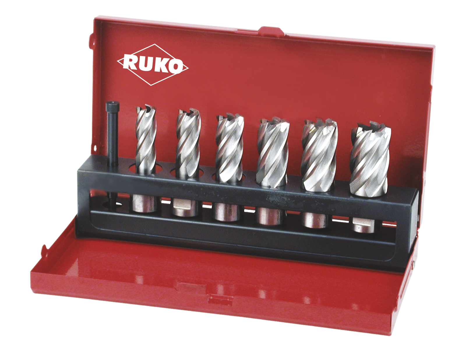 • Kerneborsæt med Weldonskaft (3/4"). 6×kernebor Ø12, 14, 16, 18, 20, 22 mm. 1×udkasterstift Ø 6,35×77 mm til skæredybde 30,0 mm (artikelnr. 108304). Velegnet til bearbejdning af stål så som T-drager, store plader, stålgods, NE- og letmetaller. Husk altid udkasterstift og vær opmærksom på skærehastighed og brug af kølemiddel.