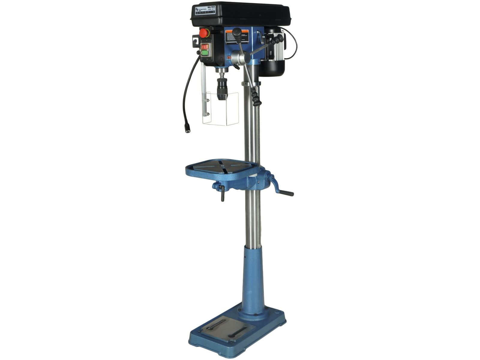 Kapacitet fra 1 mm til 20 mm. Leveres komplet med selvspændende borepatron. Separat nødstop og justerbar arbejdslampe. Udstyret med sikkerhedsafbryder ved remskifte. Beskyttelsesskærm med micro switch. Vipbart bord med gradindstilling. Leveres med højre og venstre løb (reversible) til brug f.eks. for gevind. Maks. spindelvandring 80 mm. Udladning 190 mm. Borepatron 16 mm. Svingkapacitet 410 (14”). Maks. afstand spindel & bord/sokkel 720/1.210 mm. Borddimension 285x285. Maks. Bordvipning ± 45º. Sokkeldimension 480x270 mm. Totalhøjde 1.600 mm. 3x380 V, 750 watt. 12 hastigheder. 280-2.380 omdr./min. Vægt 67 kg.