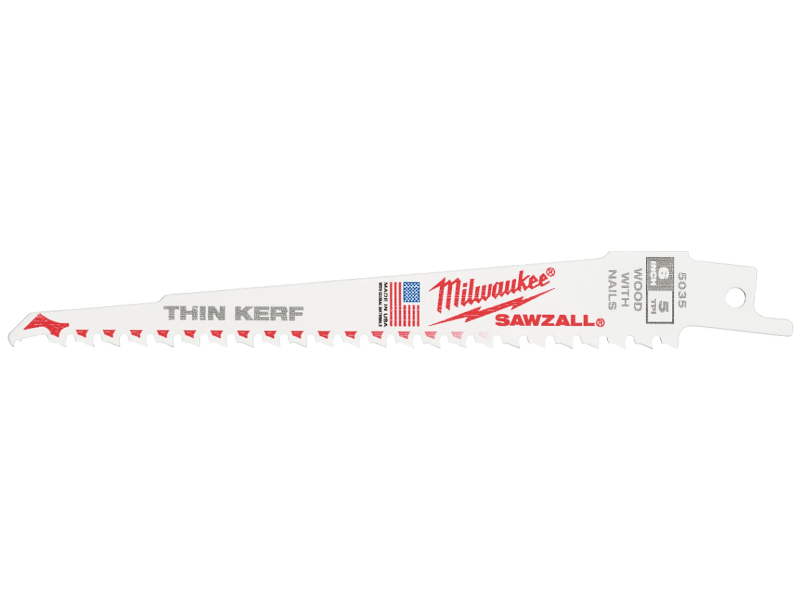 • Tynd Sawzall ThinKerf bajonetsavklinge til nedrivning i træ med søm. Design med Fang Tip for hurtigere dyksavning og tilgang til steder med begrænset plads, samt Nail Guard som beskytter klingens tænder ved kontakt med søm for øget holdbarhed og levetid. Stærk 1,27 mm klingekrop med aggressiv 5 tpi tandgeometri, som fjerner mere materiale pr. slag for hurtigere savning. Perfekt til dyksavning og til savning på steder med begrænset plads. Bimetalkonstruktion gør klingen fleksibel, så den kan bøjes uden at gå i stykker.