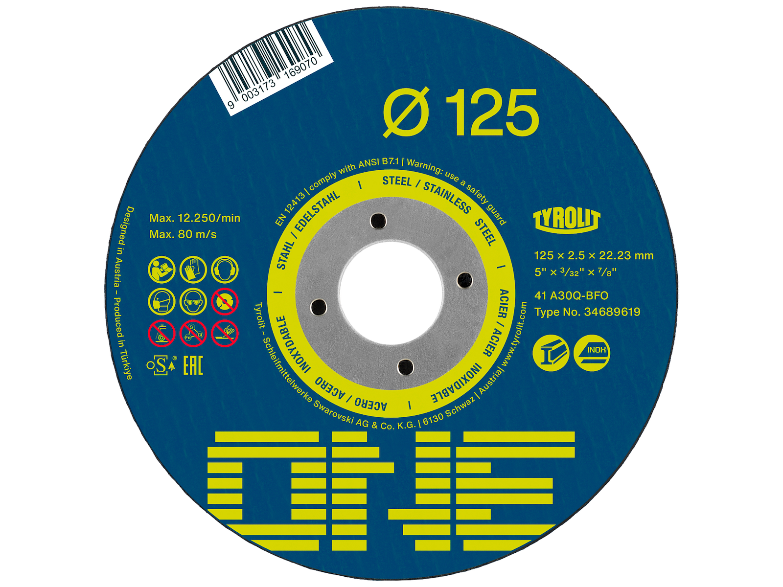 Tyrolit One skæreskive form 41 ø125×1,6 A46Q-BFO