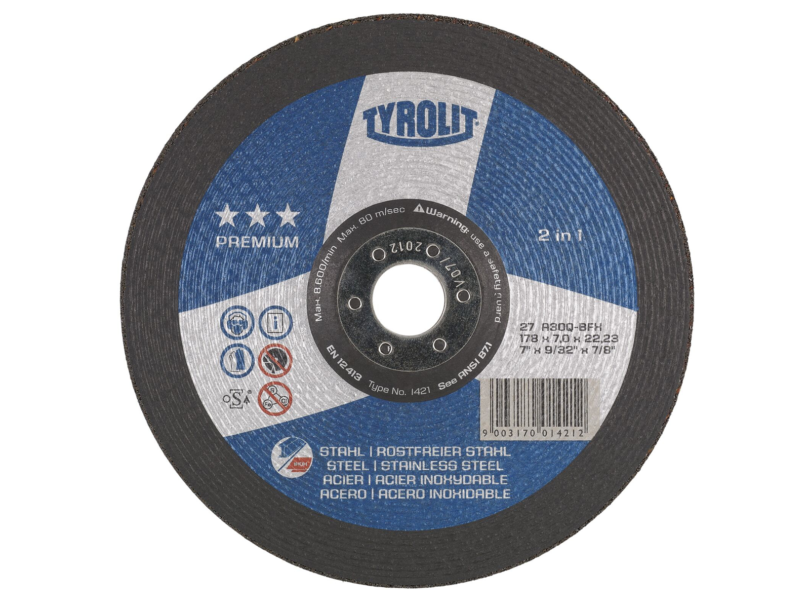 Premium Skrubskive 2IN1 til stål og rustfrit stål. Denne Skrubskive er velegnet til arbejde i stål og rustfrit stål. Det blødere design gør, at der kan arbejdes hurtigt og komfortabelt med Premium 2IN1 uden stor kraftanvendelse. Dette muliggøres af en ny binding med grovere korn samt en ny belægningsstruktur. Det, der gør denne 2IN1 Skrubskive så enestående, er, at kanten på værktøjet ikke er afrundet, men skrå og defineret. "Comfort start"-kanten gør, at brugeren kan få en behagelig start ved slibning, og at arbejdskomforten øges betydeligt. Høj aggressivitet og væsentligt længere levetid. Materialet ødelægges ikke ved, at skiven stikkes ind, og det betyder, at man undgår overflødig efterbearbejdning. "Comfort Start"-funktionen gør, at der ikke skal stikkes i emnet, og starten bliver nemmere og mere behagelig.