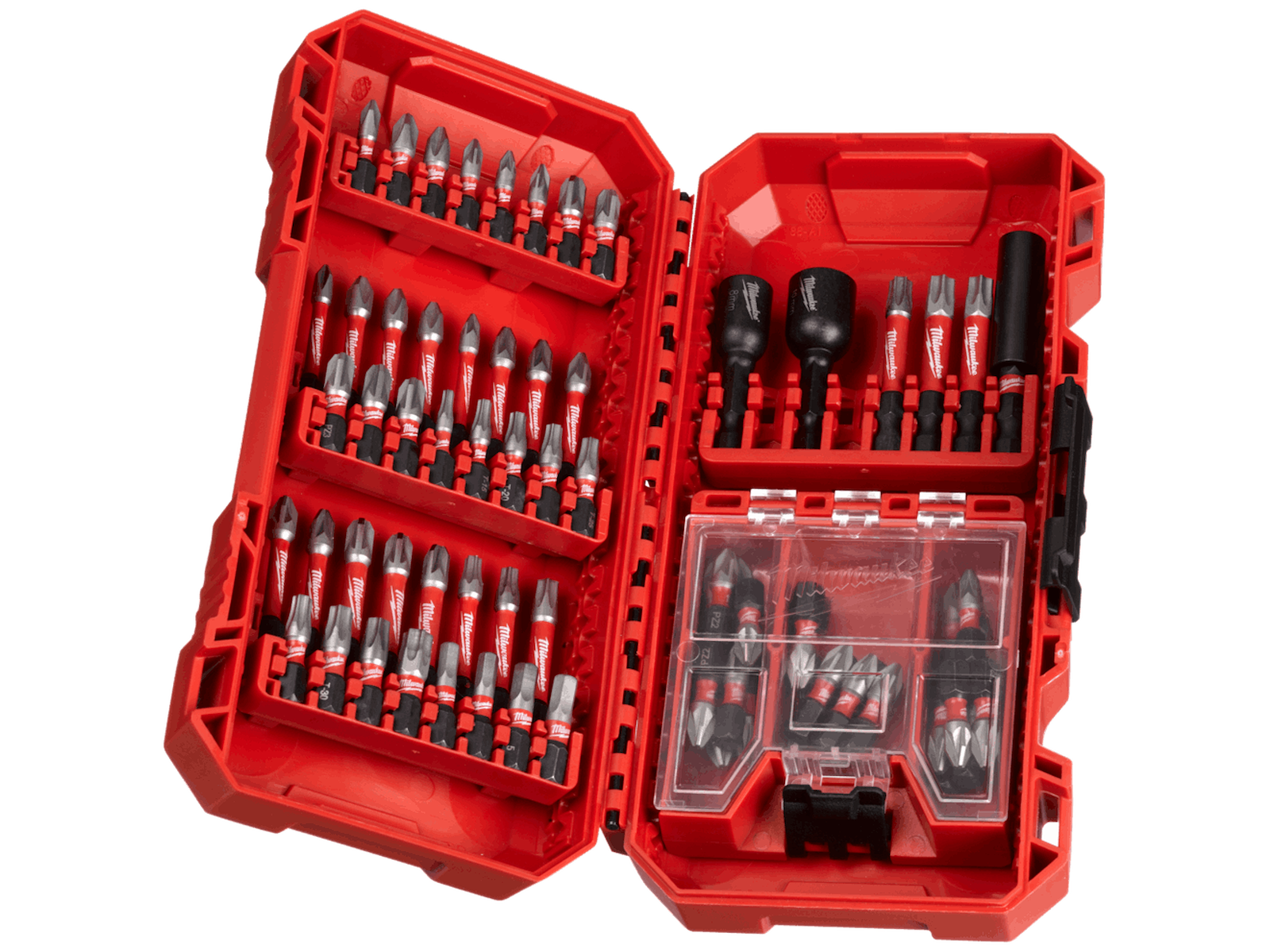 Shockwave Impact Duty slagbitssæt med 70 dele. Serien er ikke kun ideel til heavy-duty opgaver med slagskruemaskiner, men en komplet løsning til enhver bore- og fastgørelsesopgave. Shock Zone geometri for maksimal fleksibilitet: reducerer spidsens belastning, hvilket resulterer i færre brud. Kombinationen af Shock Zone designet og den specielle varmebehandling absorberer slag og tillader bitten af bøje på en lignende måde som fx en fjeder. Smedet spids for ekstra lang levetid og optimal tilpasning i skruehovedet som sikrer, at bitten ikke glider og skruer over gevind. Indeholder: Shockwave skruebits: 48× 25 mm længde 1× PH1 / 2× PH2, 3× PZ1 / 24× PZ2 / 5× PZ3, 1× TX10 / 1× TX15 / 2× TX20 / 2× TX25 / 2× TX30 / 1× TX40, 2× Hex 4 mm / 2× Hex 5 mm - - - 19× 50 mm længde 1× PH1 / 3× PH2, 1× PZ1 / 5× PZ2 / 3× PZ3, 1× TX20 / 1× TX25 / 2× TX30 / 2× TX40 - - - 2× Shockwave møtrikspænder 48 mm længde: Hex 8 mm / Hex 10 mm - - - 1× Shockwave magnetisk bitholder 60 mm længde.