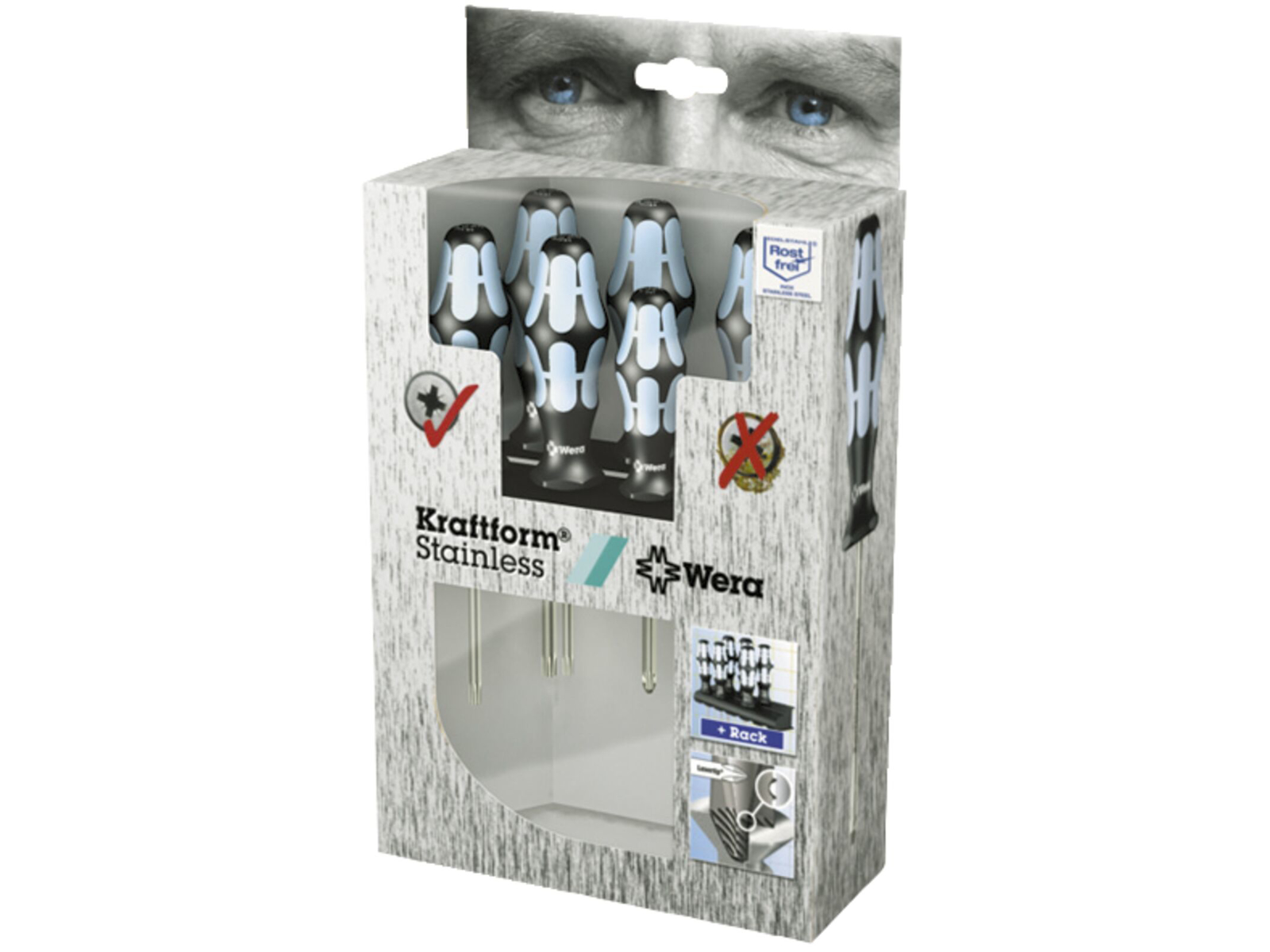 WERA Rustfri stål skruetrækker sæt, 4 Torx, 2 pozidrive og rack.