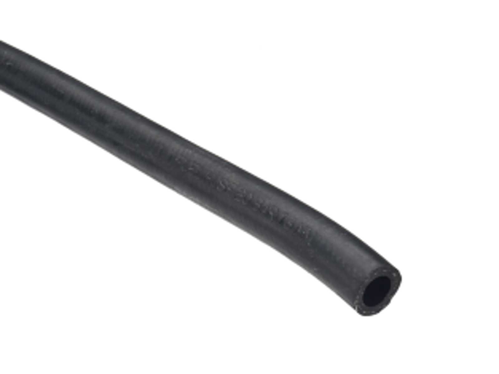 Sort, glat ekstruderet gummislange med polyesterarmering, for oliebaserede produkter.
