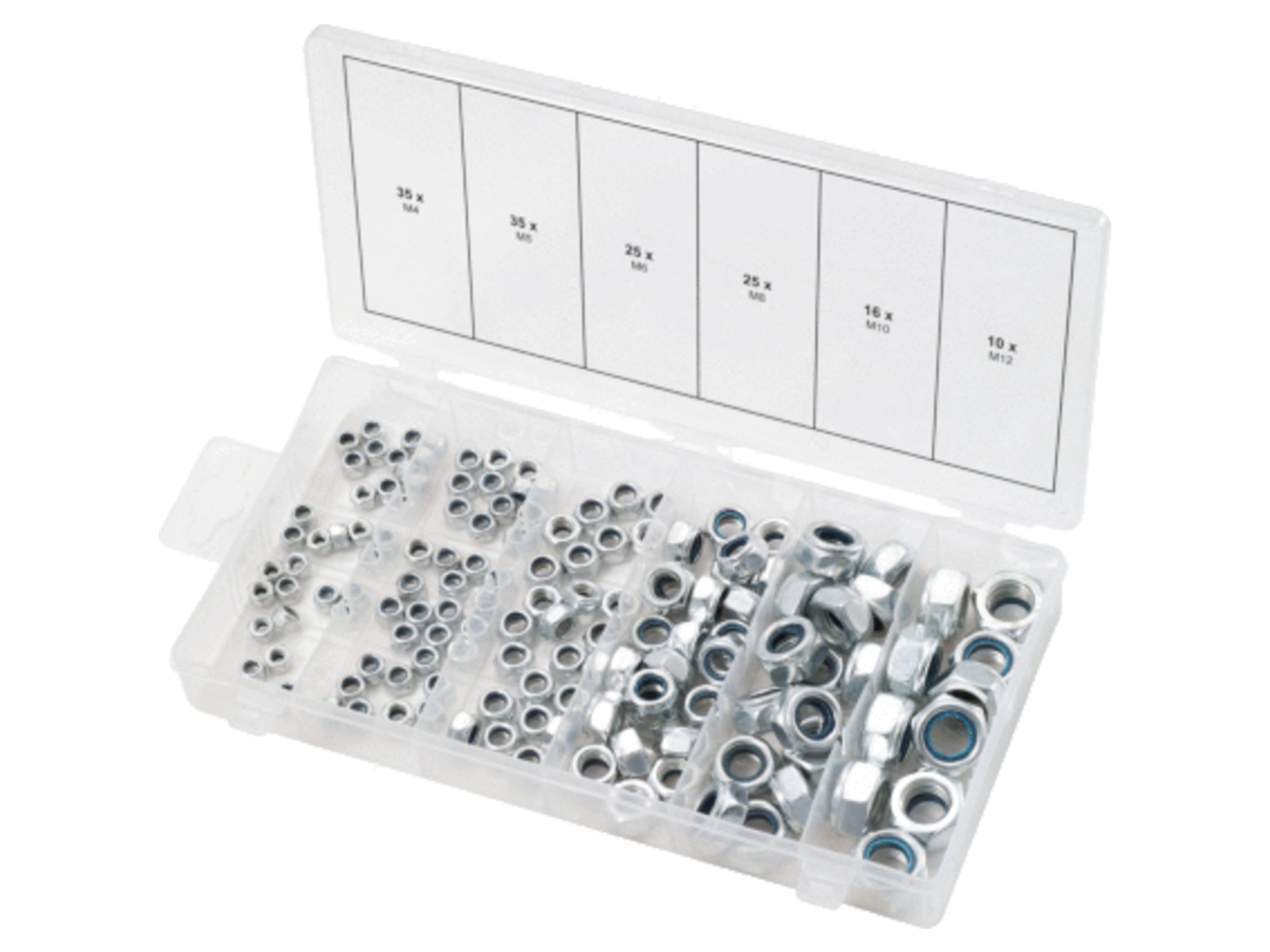 Sortiment af sikringsmøtrikker, M4-12, 146 dele