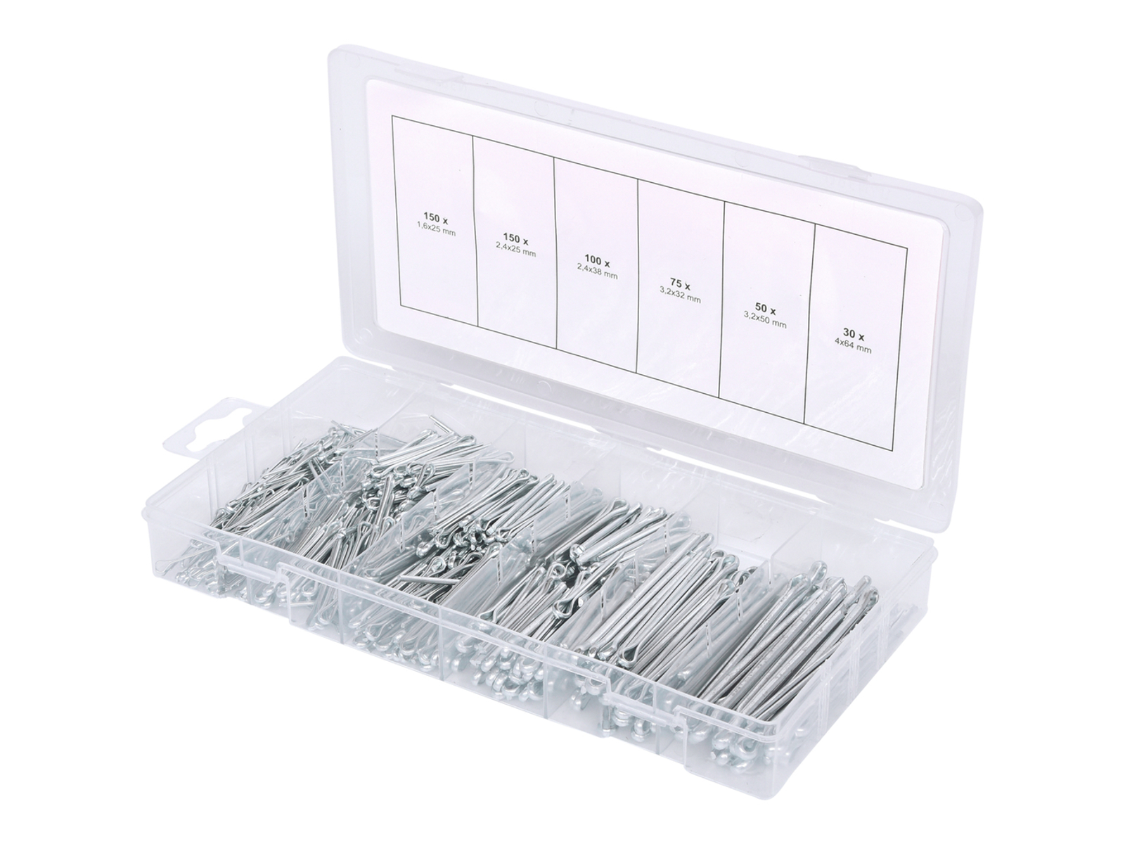 Sortiment af splitter, 1,6x25,4 mm-4,0x63,5 mm, 555 dele
