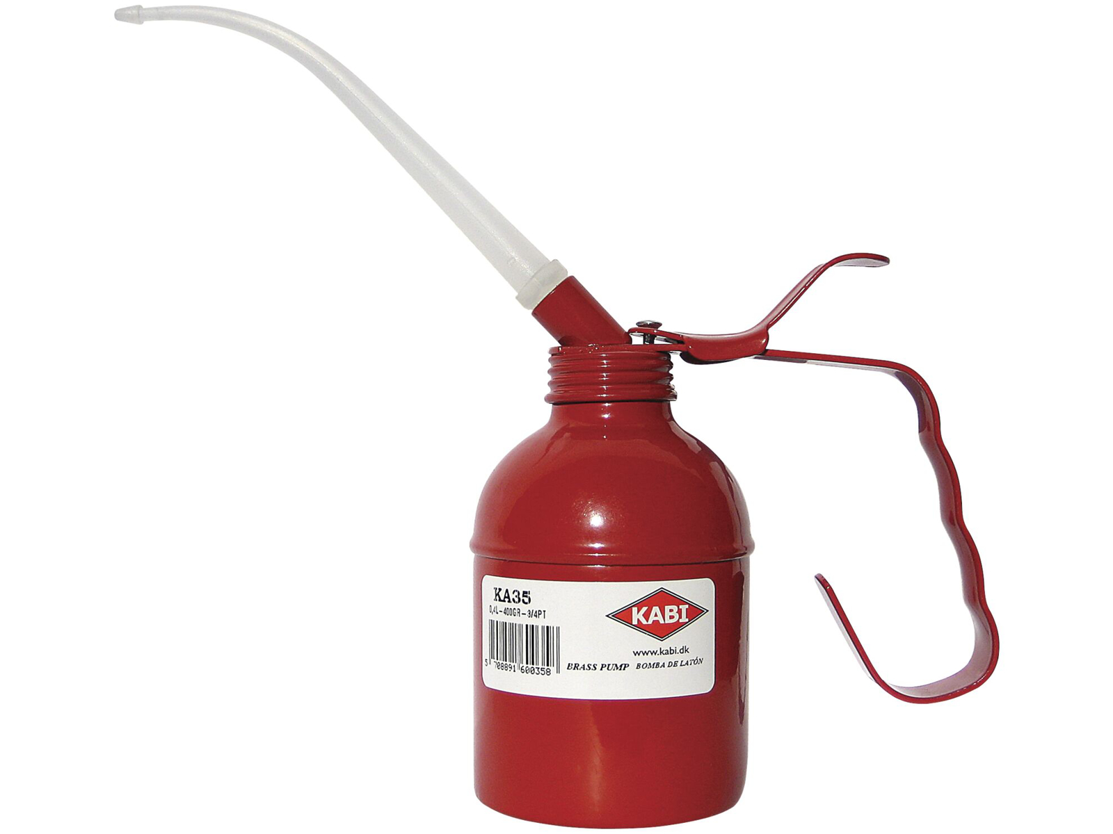 KABI patenteret tryksmørekande med messingpumpe. Beholder: Stål 0,40 ltr. Tud: Nylon
