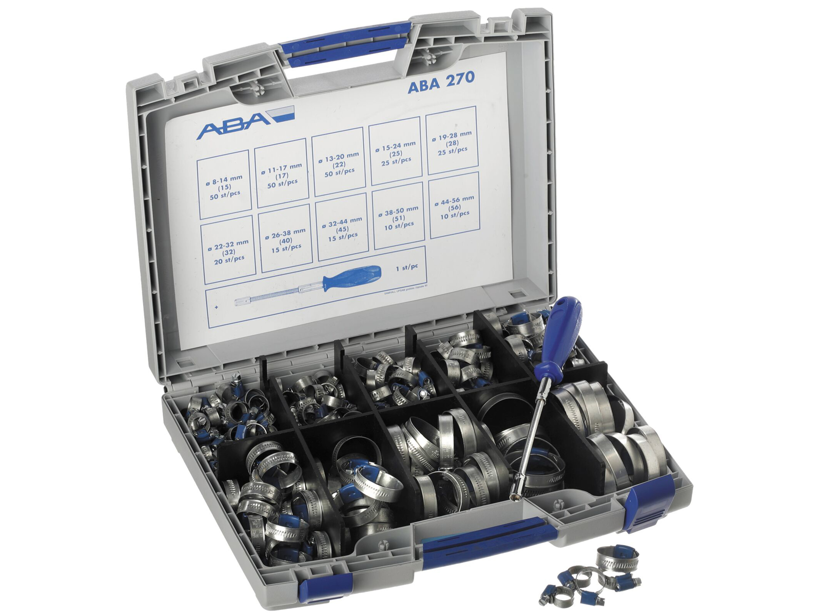 ABA sortiments kuffert m/270 stk. ass., galv. spændebånd & flex skruetrækker