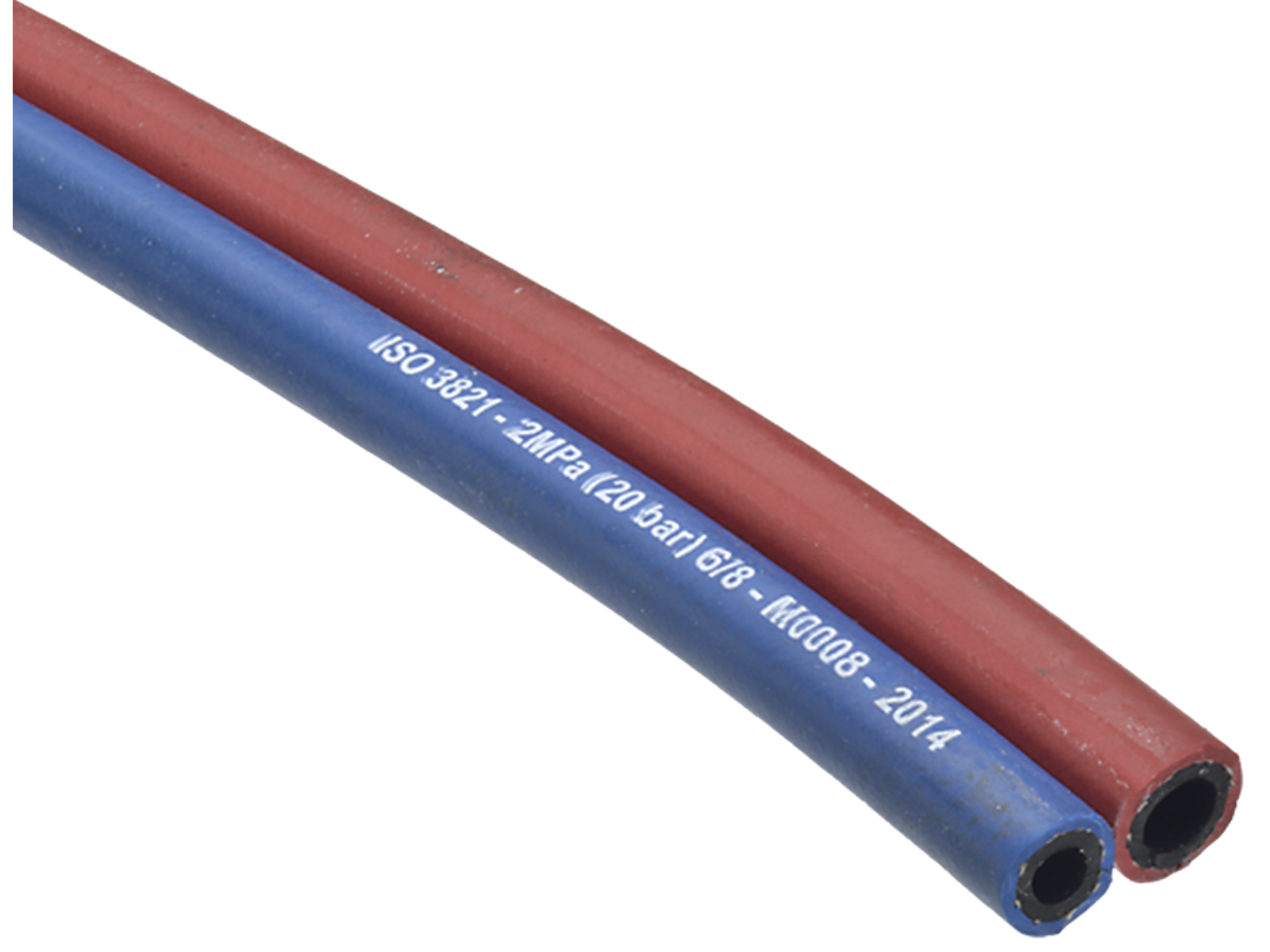• Udvendig rød/blå, indvendig sort glat, ekstruderet trykslange med indlæg af syntetisk garn. Tvillingeslange som anvendes til svejsning. Blå slange til oxygen, rød slange til acetylen. Superfleksibel udførsel. God vejr- og ældningsbestandighed. Fremstillet efter: ISO 3821. Rulle med 50 meter. (pris pr. meter).