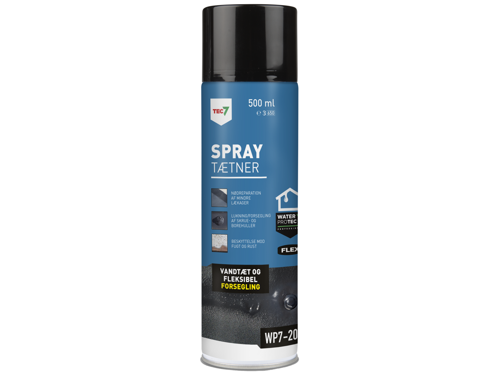 WP7-201 spraytætner til inden- og udendørsbrug. Sprayen beskytter mod vand og rust - og er øjeblikkelig fuldstændig vand- og vindtæt. Anvendes overalt til tætning, reparation og beskyttelse af alle underlag. Danner en robust, elastisk, vandbestandig overflade, der beskytter mod stød, stenslag og slag, samtidig med at vibration og støj reduceres. Kan slibes og males efter hærdning. Kan også benyttes til nødreparationer af tag, tætning af tagrender, forsegling af skrue og borehuller, antikorrosionsbehandling af alle metalkomponenter, samt beskyttelse af dele på campingvogne, trailere og både.