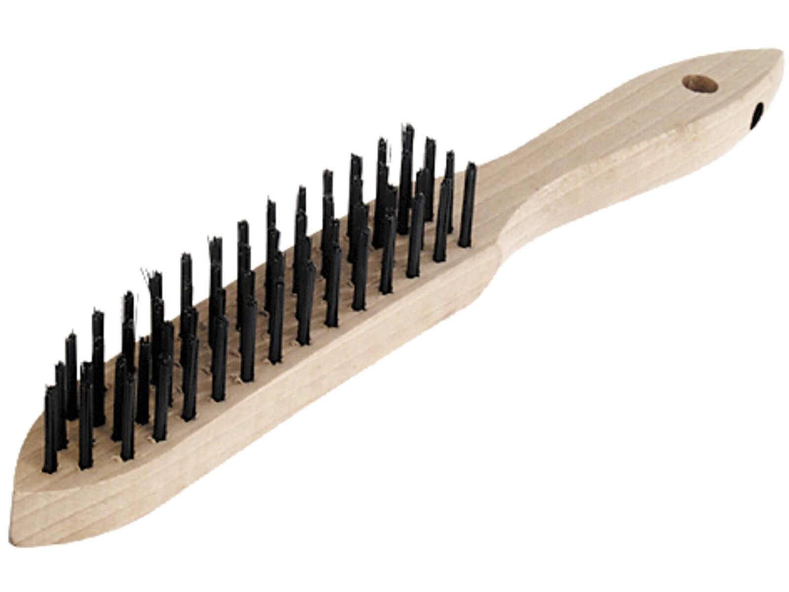 Klassisk håndstål børste med træskaft. 4 rækker stål.
