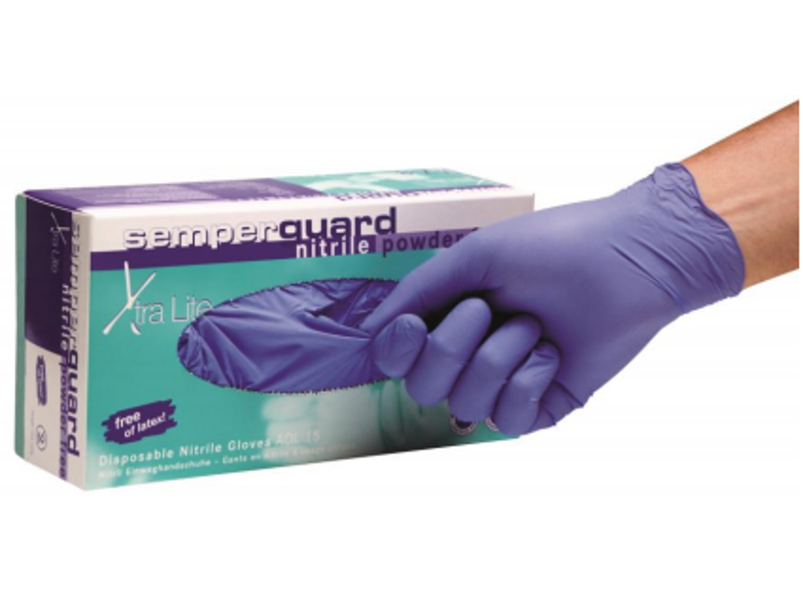 Super tynd nitril undersøgelseshandske. Alternativ til vinylhandsker, som ikke længere er godkendt til håndtering af animalske råvarer. Godkendt til fødevareindustrien. Lavendel uden pudder. Længde: 24-25,5 cm. Tykkelse: Min. 0,05 mm, AQL 1,5.