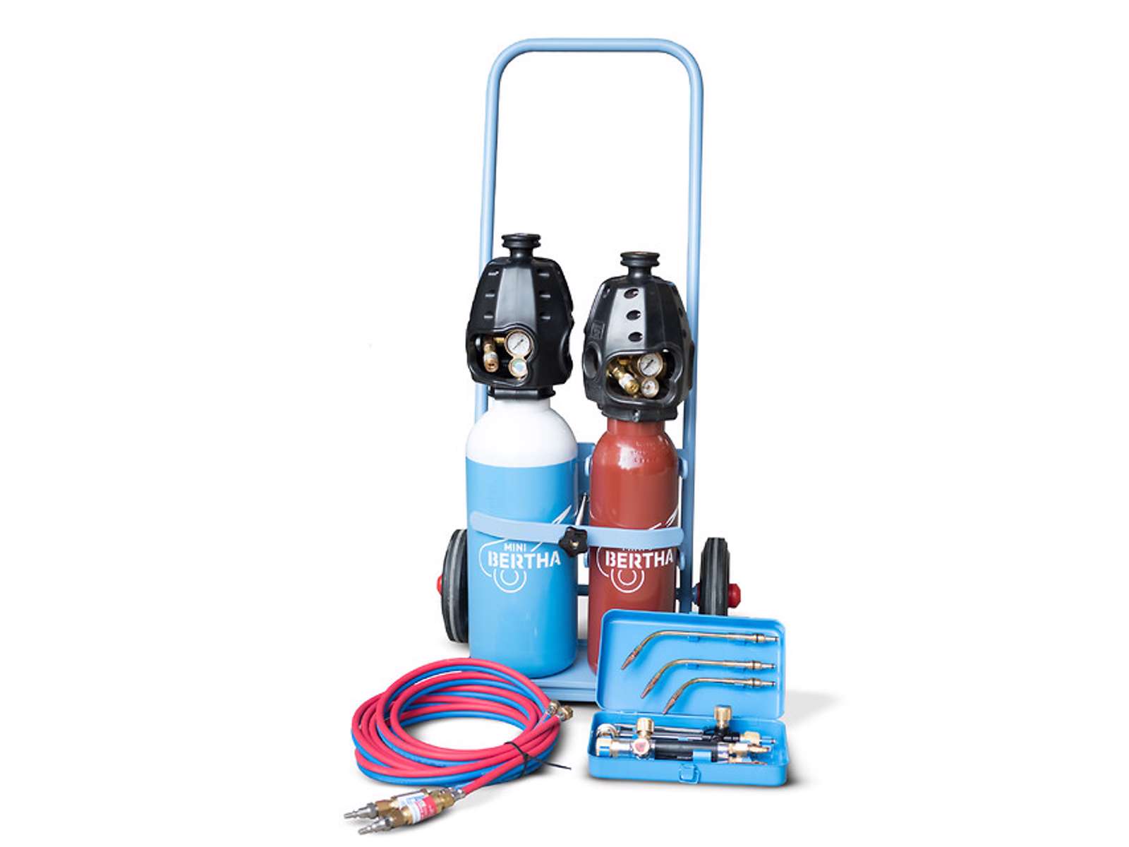 Mini Bertha svejse- og skæresæt er en komplet samarbejdspartner for dig, som arbejder med autogensvejsning, hærdning, opvarmning og flammerensning. Sættet indeholder nemlig