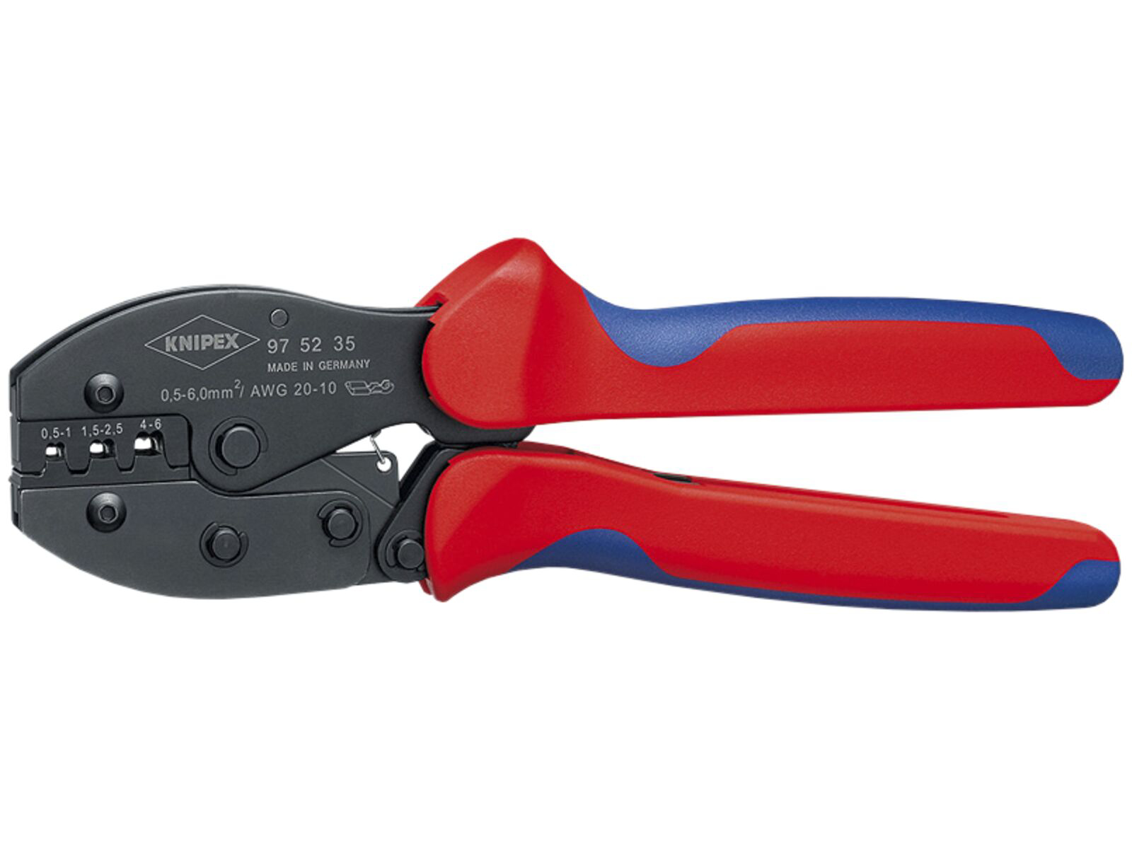 KNIPEX PreciForce Crimptang bruneret med flerkomponent-håndtag 220 mm. Vedblivende høj crimpkvalitet pga. præcisionsprofiler og tvangsspærre med trin (kan låses op). Crimptrykket er præcist indstillet (kalibreret) fra fabrikkens side, kan justeres. Kraftforstærkning pga. knæstang for arbejde uden anstrengelse. God håndtering pga. god grebstilling, lav vægt, kort form og ergonomisk formede greb. Krom-Vanadium-elektrostål i specialkvalitet, oliehærdet.