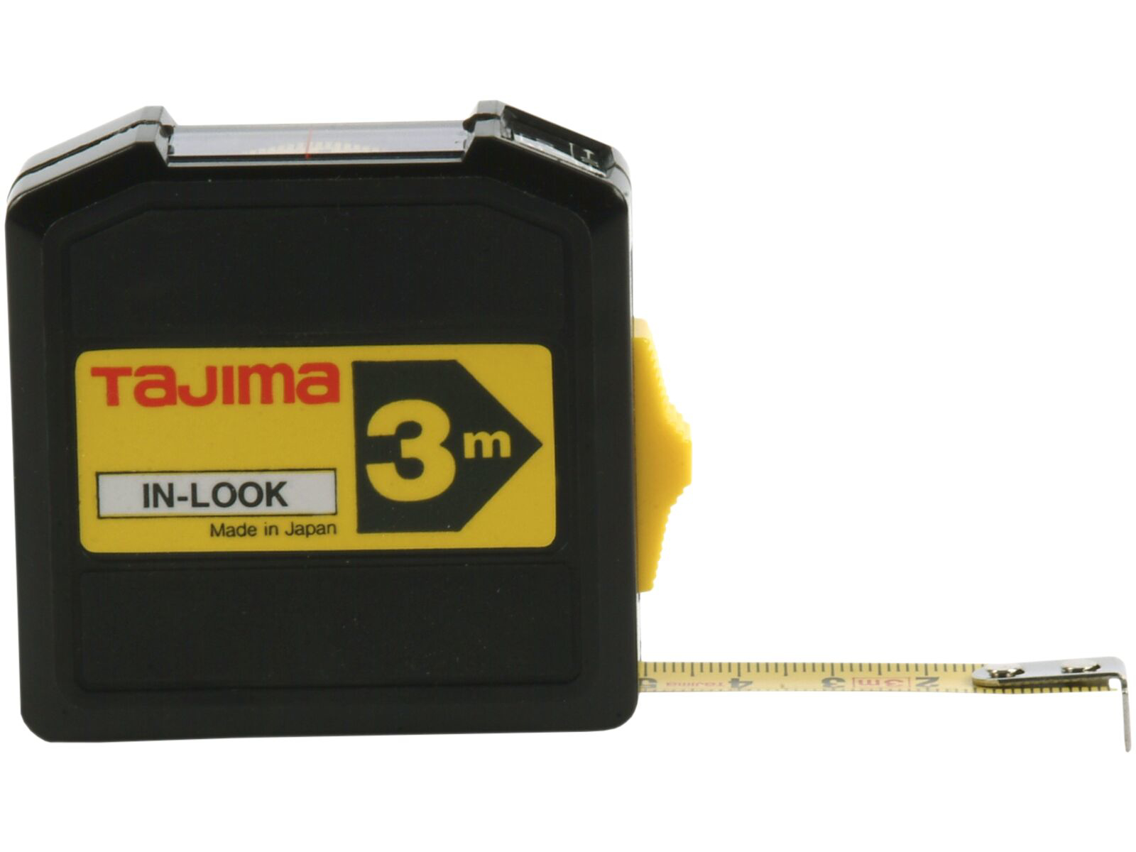 Tajima In-lock 3,0 mtr båndmål med 13 mm bånd. Aflæsningsglas med forstørrelse. Til både indvendig og almindelig opmåling. Med bælteclips. Godkendt efter EC2.