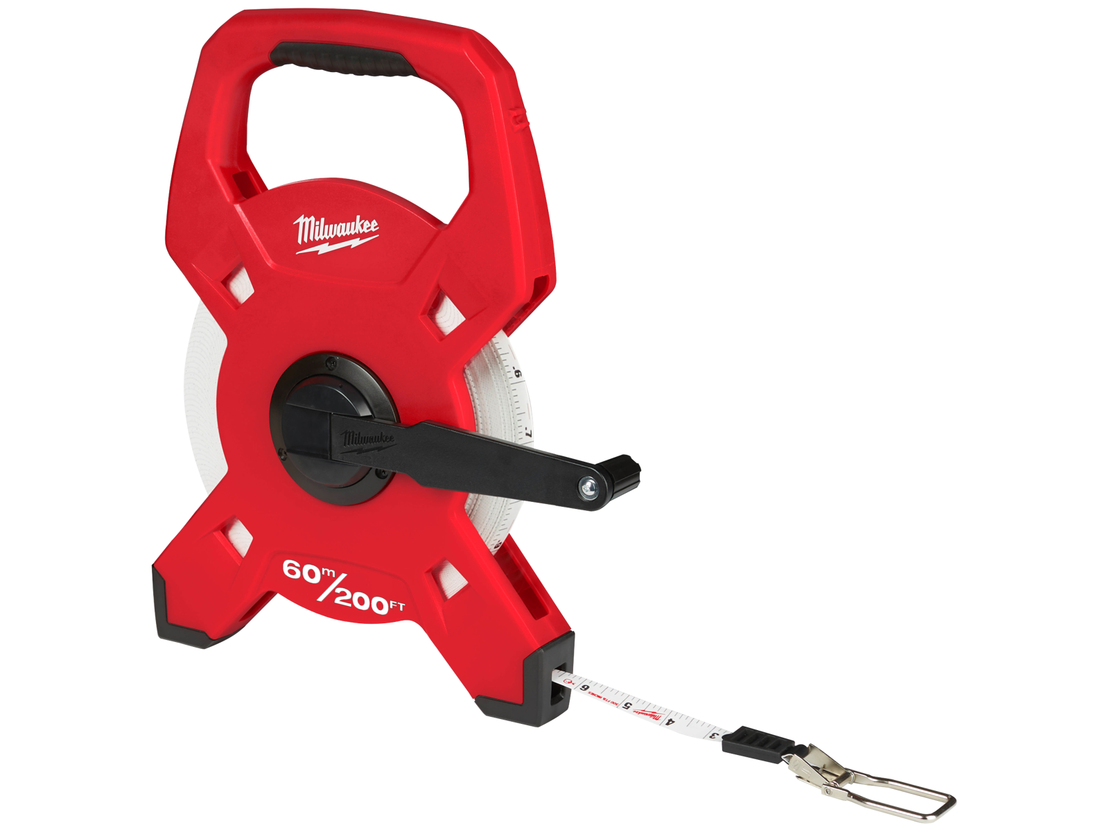 Let, langt båndmål i glasfiber. 3:1 planetgear for lang holdbarhed og let oprulning. Med båndbeskyttelse, som holder båndet rent og frit for snavs. Print på begge sider: cm på oversiden og tommer+fod på undersiden af båndet. 13 mm båndbredde.