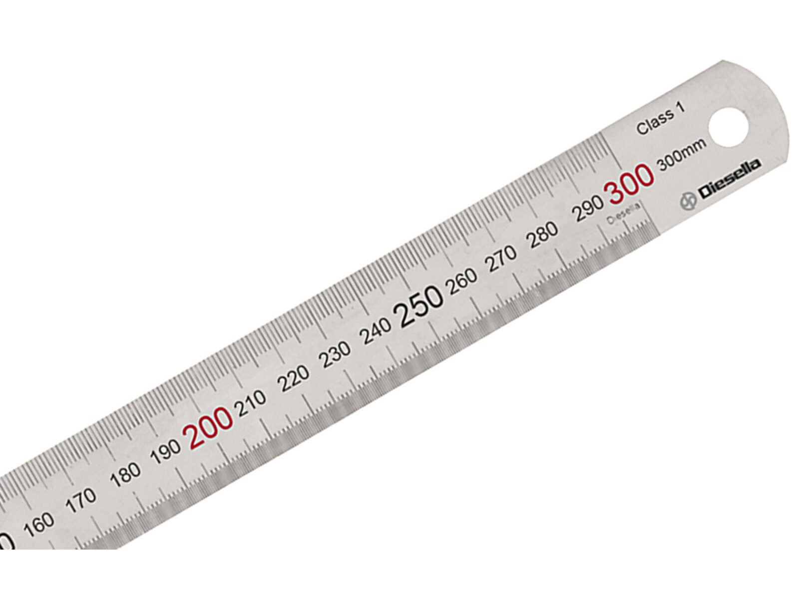 Matforkromet. Inddeling: 1 mm og 0,5 mm, gevindtabel, omsætningstabel fra tommer til mm på bagsiden.