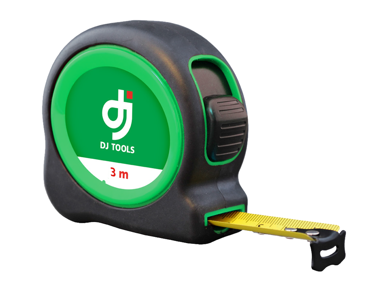 DJ Tools båndmål i stål. Slidstærkt, gult målebånd med letaflæselig sort skrift og dæmpet båndretur. Kraftigt endebeslag af metal for sikker fastgørelse ved opmåling og slagfast kapsel i robust ABS-plast med gummibelægning for skridsikker håndtering. Stærk bremsefunktion gør det let at låse båndet i en ønsket længde. Typegodkendt iht. EU klasse II.